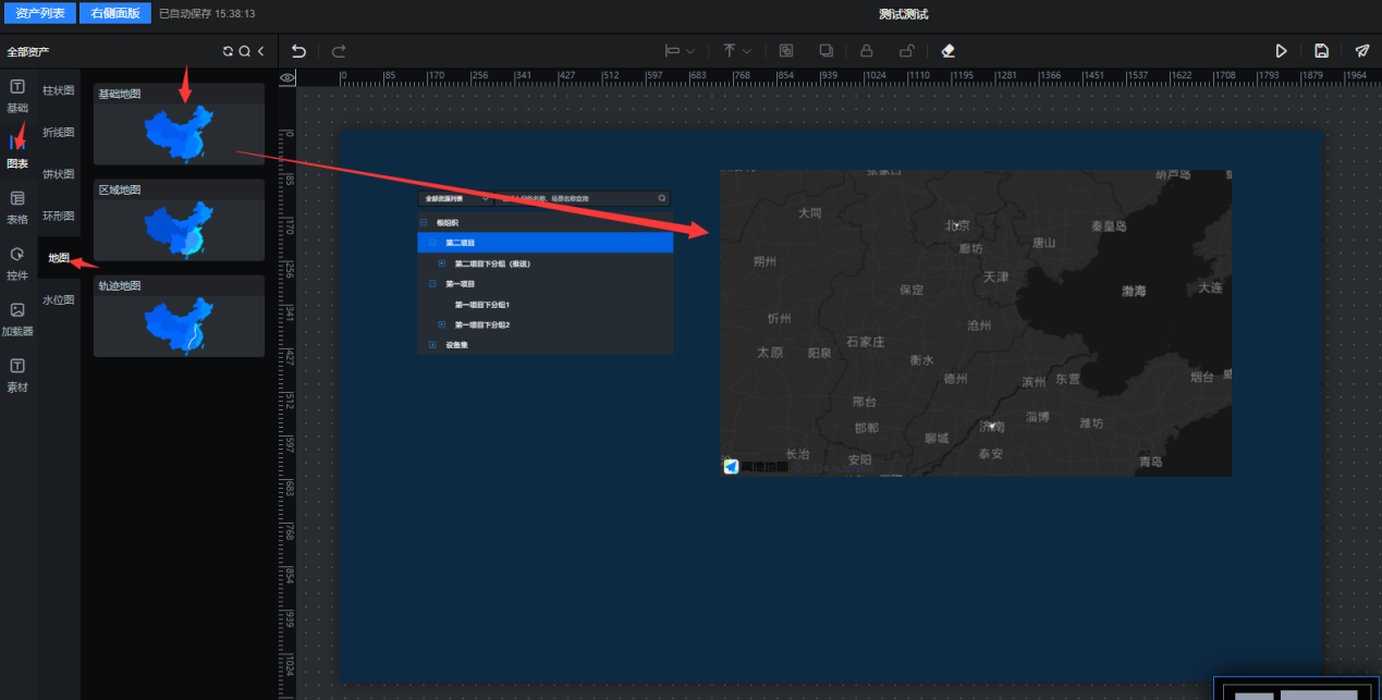 2、點(diǎn)擊圖標(biāo)欄,在地圖內(nèi)找到基礎(chǔ)地圖,拖入畫布中