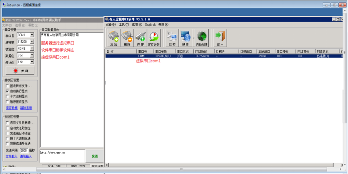 服務器中設置虛擬串口軟件和串口調(diào)試助手軟件;