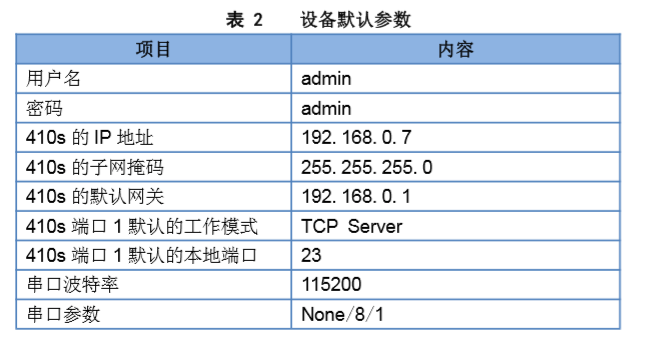 3.給電腦設(shè)置靜態(tài)IP,要與410S的IP在同一個(gè)網(wǎng)段(410S默認(rèn)參數(shù)見(jiàn)表2)。
