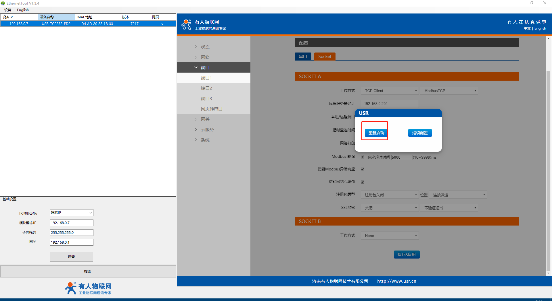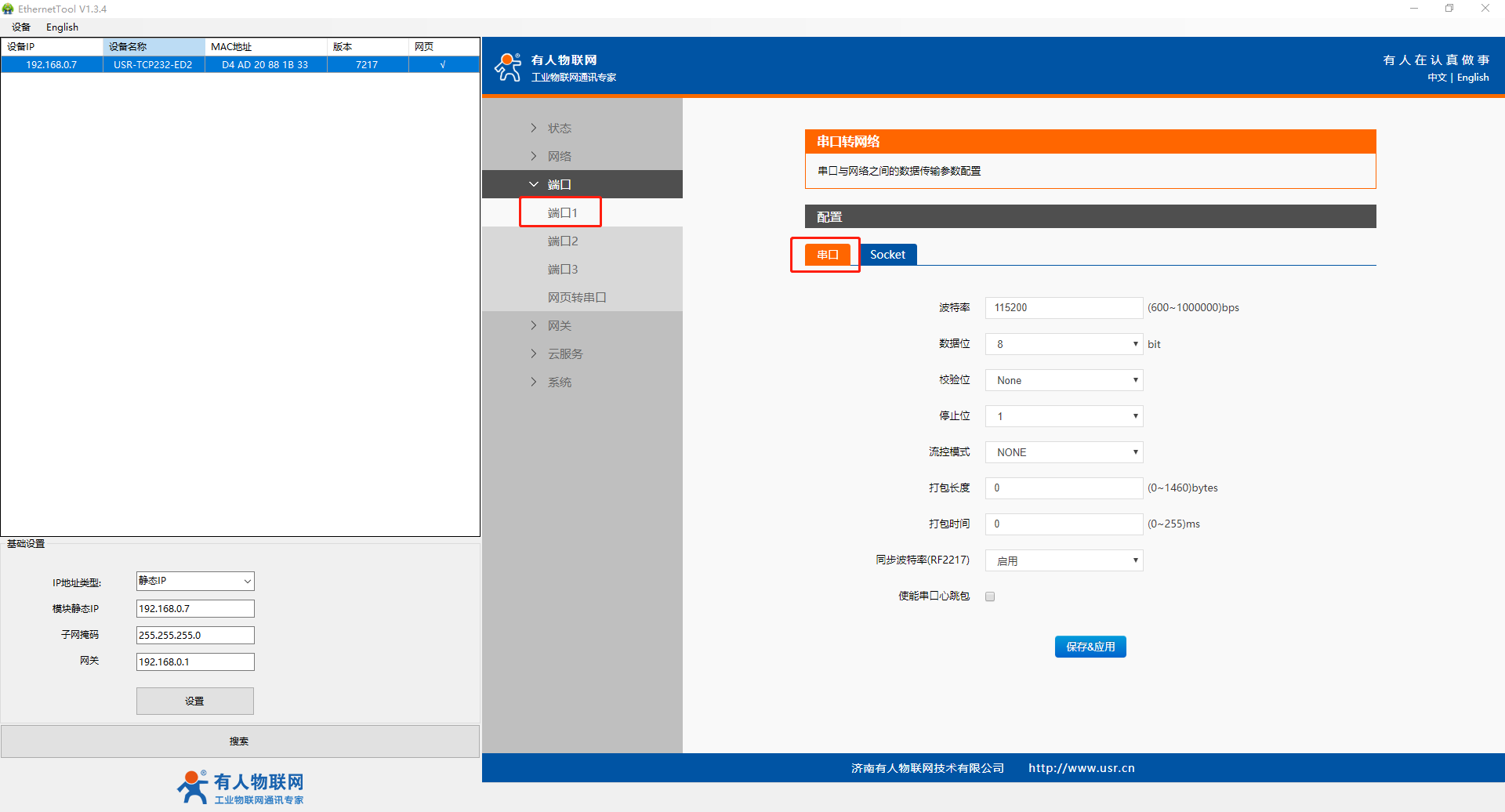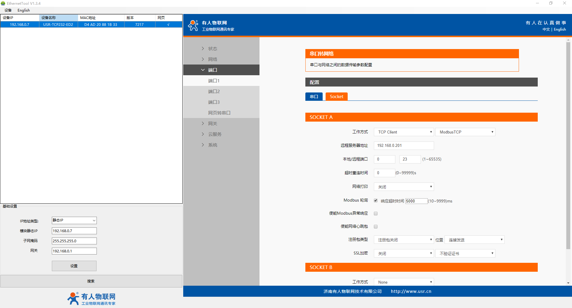 三、USR-TCP232-ED2參數(shù)設(shè)置