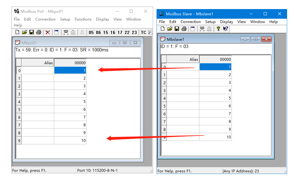 1、改變MODBUS SLAVE寄存器地址里面的數(shù)據(jù),對(duì)應(yīng)寄存器地址的MODBUS POLL軟件可以正常讀取。