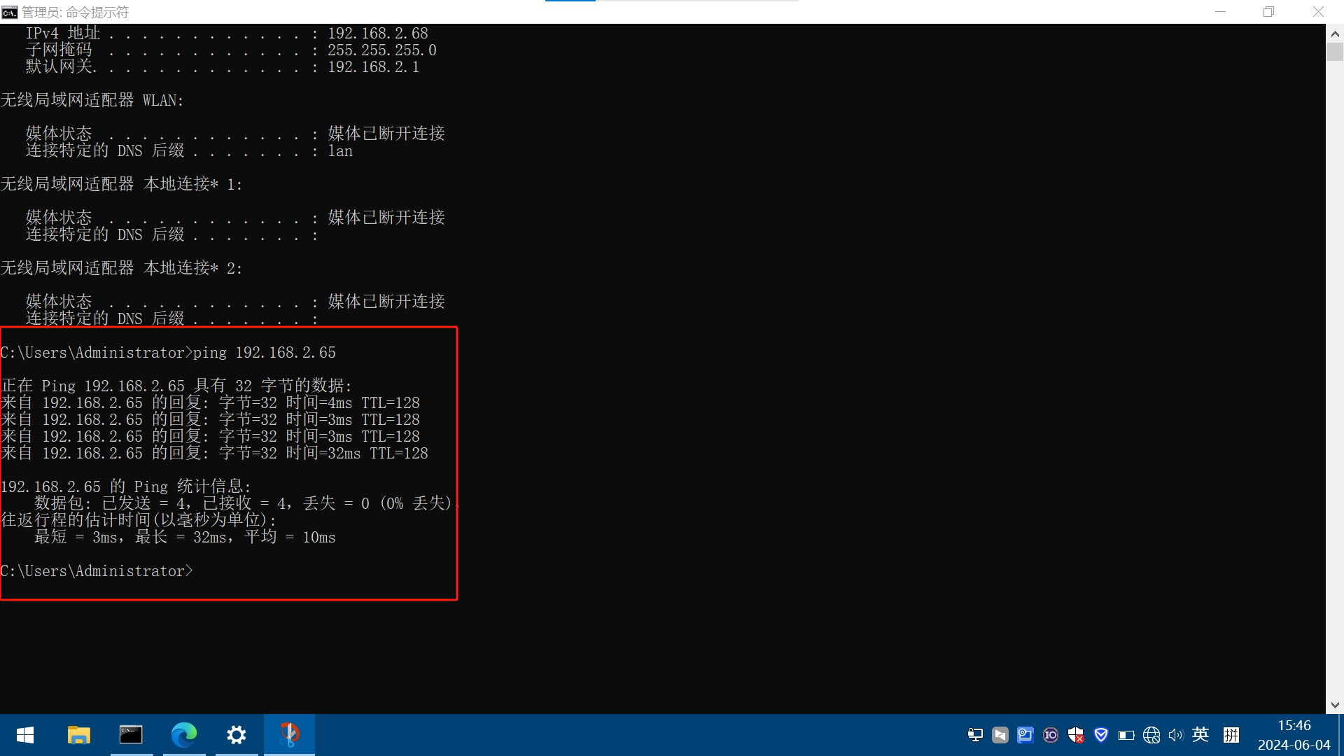 電腦1和電腦2之間進(jìn)行ping測(cè)試以及TCP連接數(shù)據(jù)交互測(cè)試。