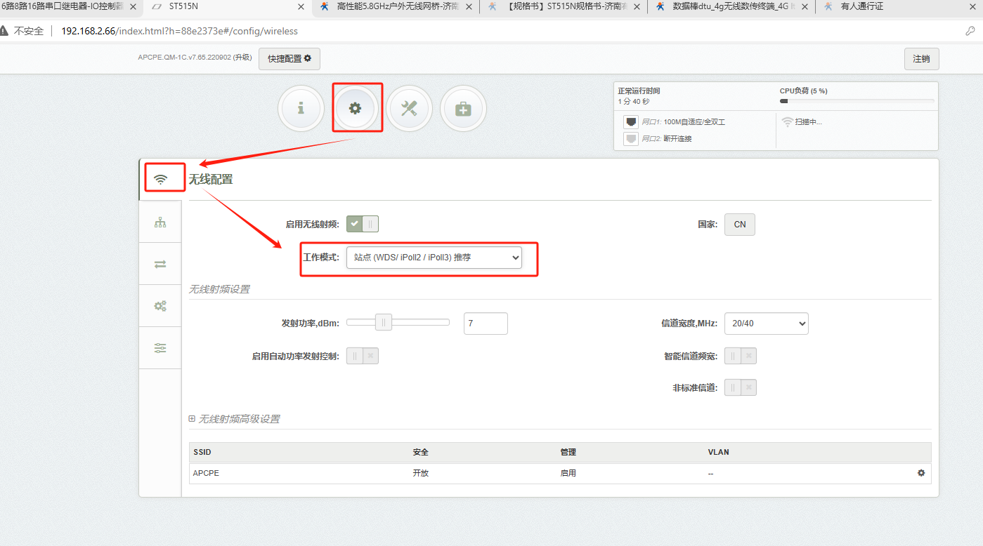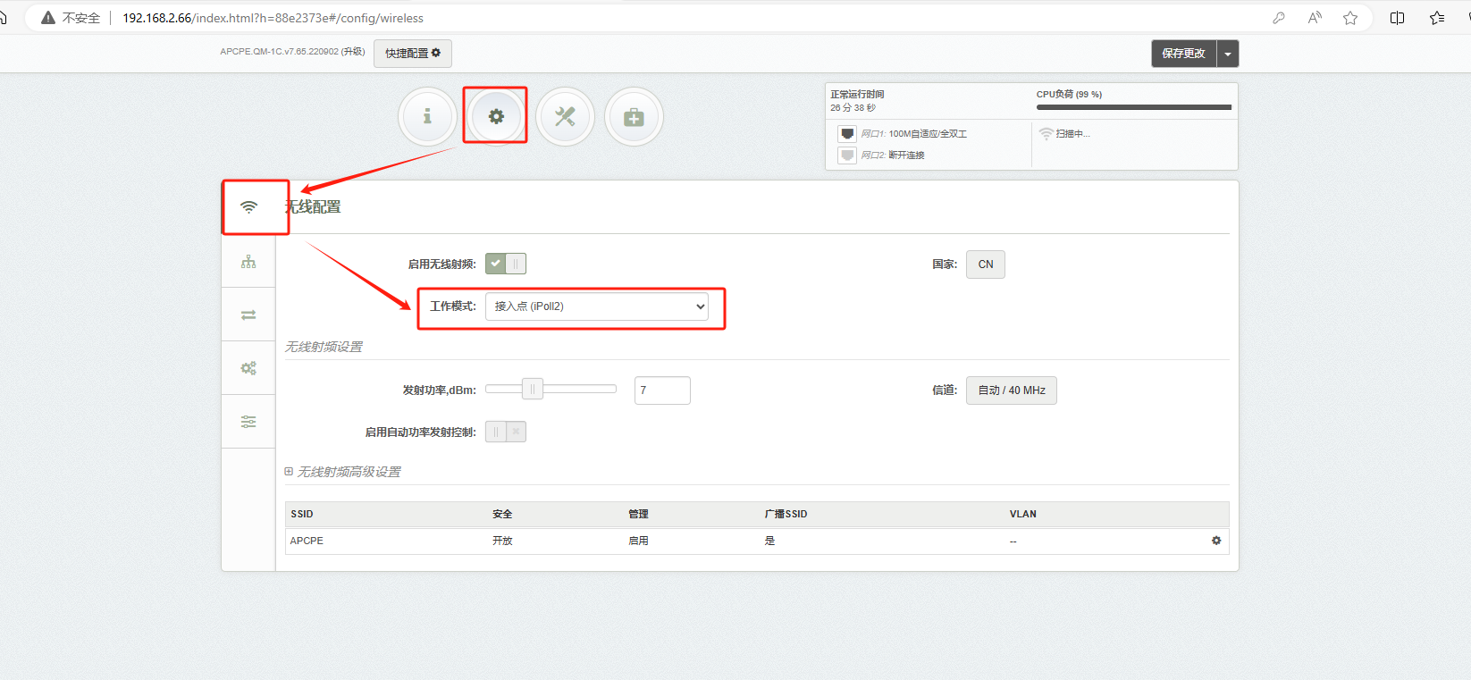 點(diǎn)擊設(shè)置按鈕---無線配置,將工作模式設(shè)置為接入點(diǎn)iPoll2