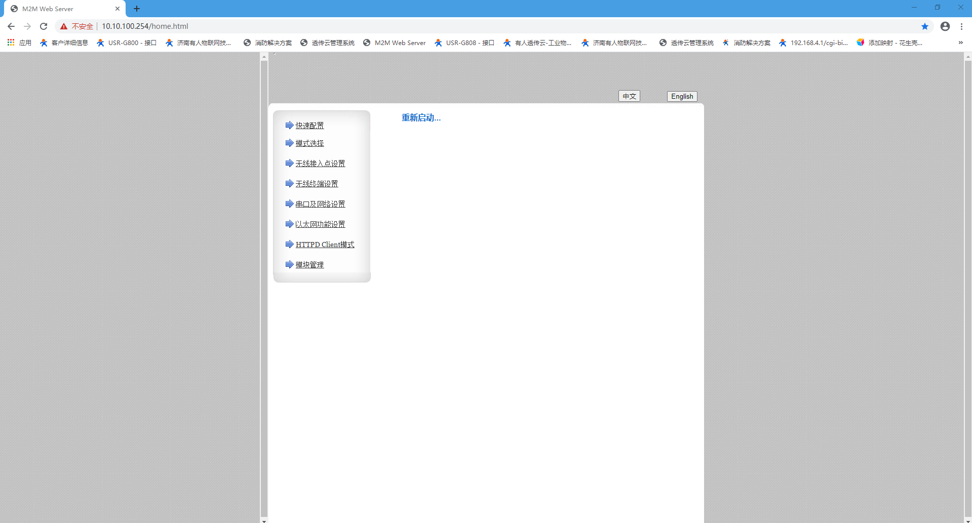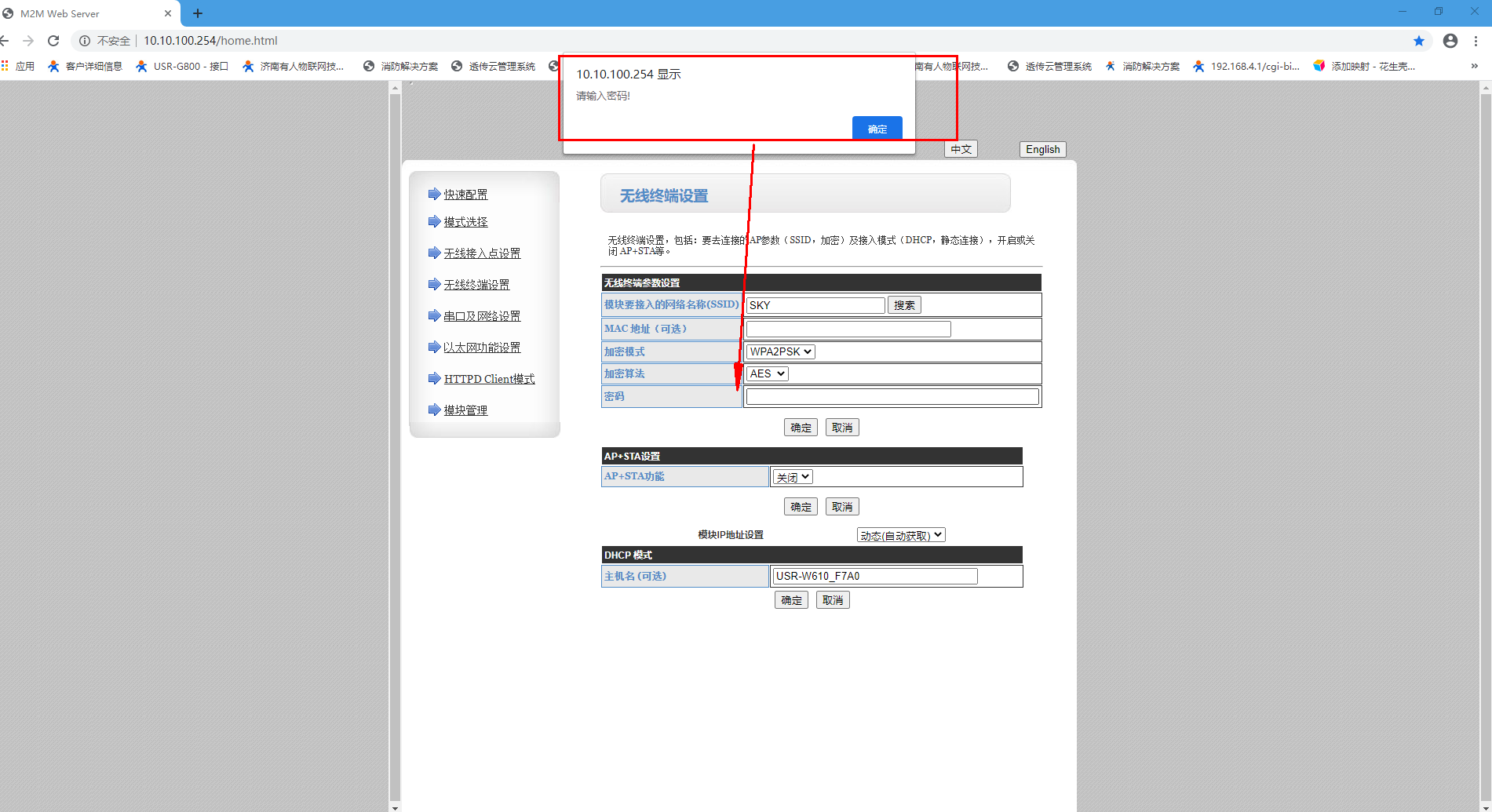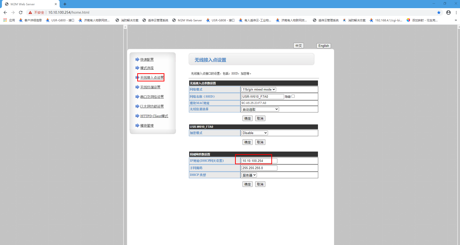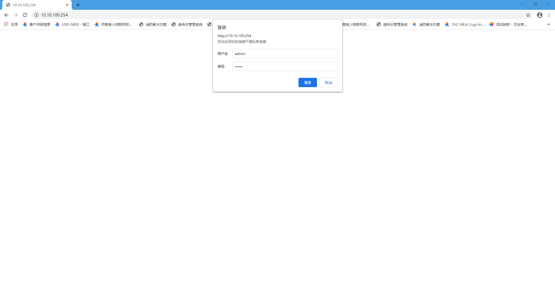 2、瀏覽器輸入U(xiǎn)SR-W610默認(rèn)IP,10.10.100.254 登錄USR-W610的內(nèi)置網(wǎng)頁。