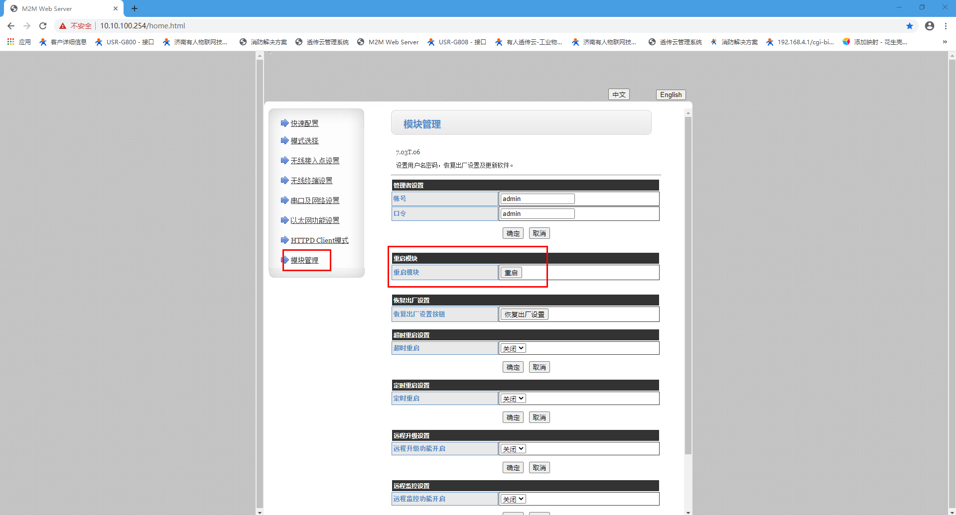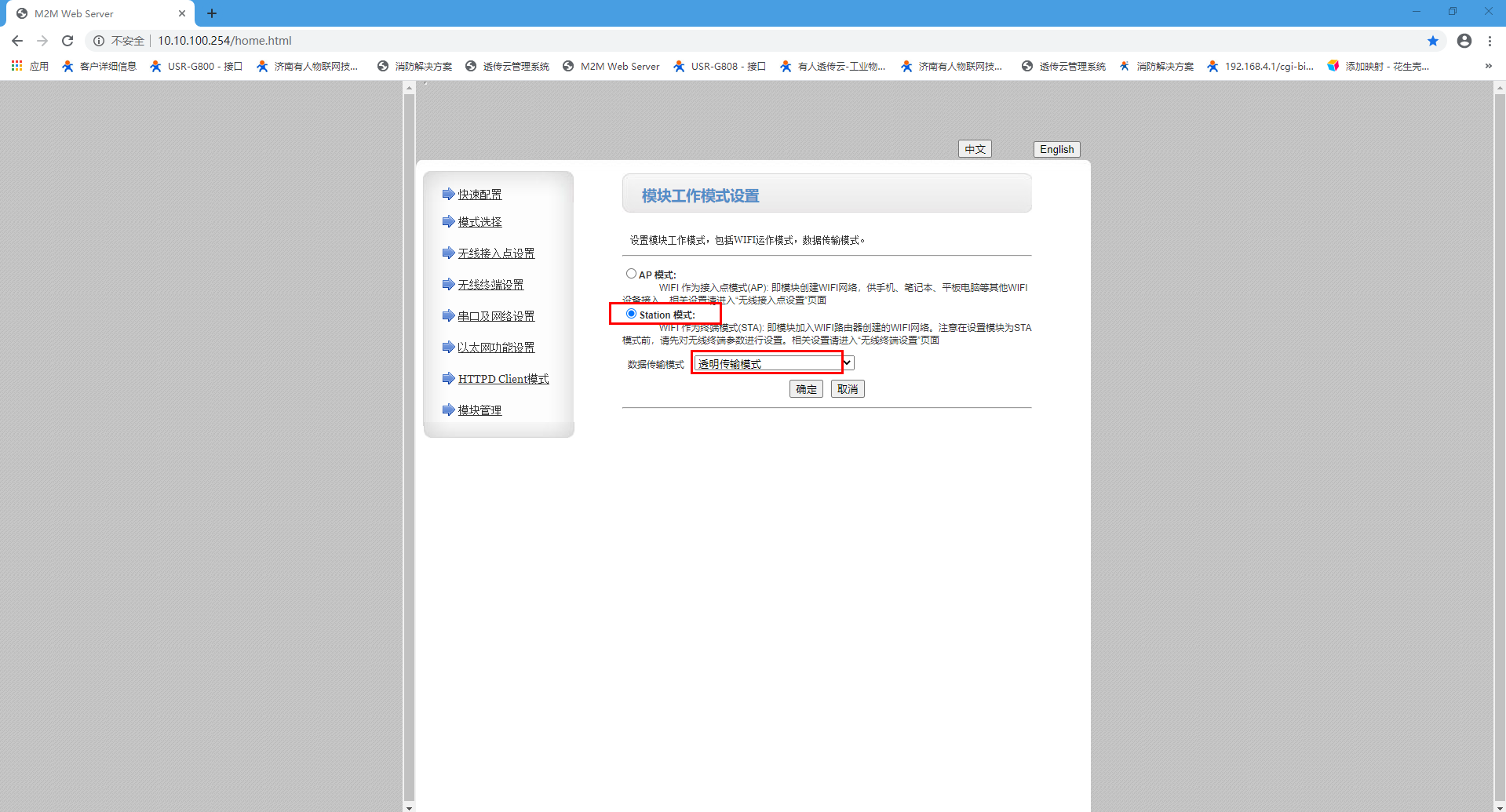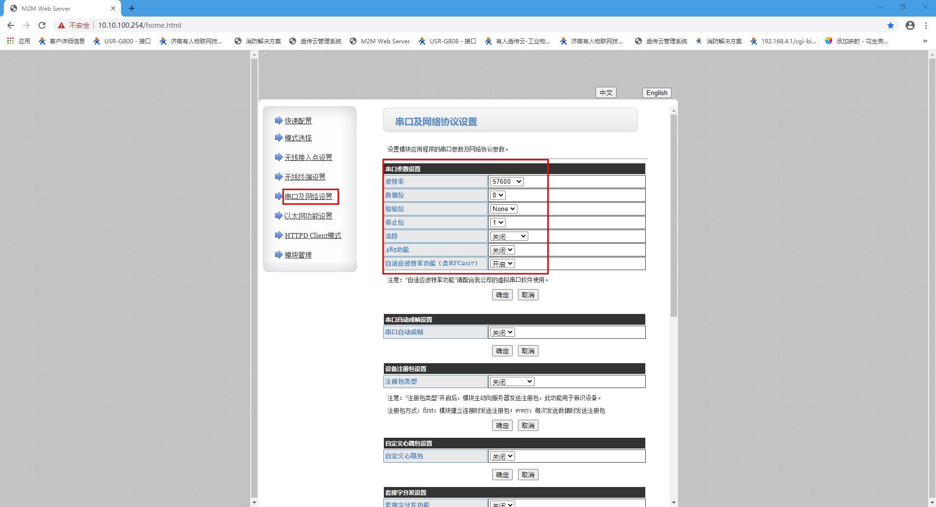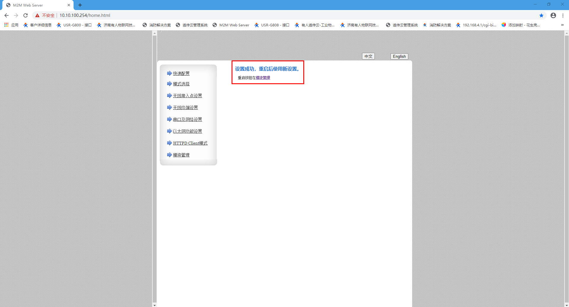 2、瀏覽器輸入U(xiǎn)SR-W610默認(rèn)IP,10.10.100.254 登錄USR-W610的內(nèi)置網(wǎng)頁。
