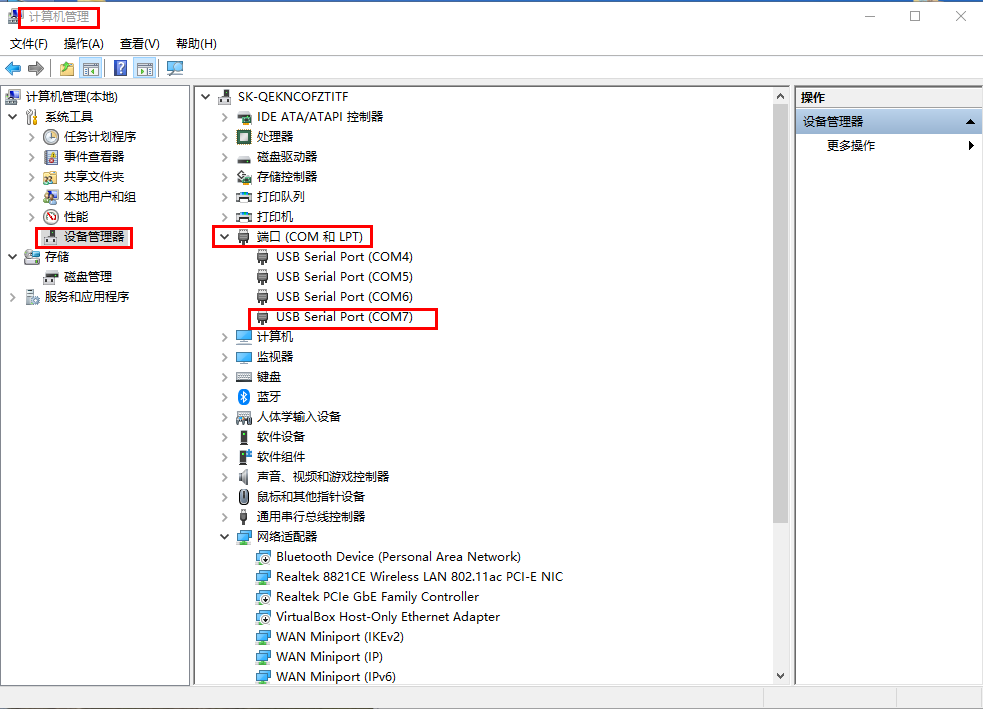 1、電腦打開計(jì)算機(jī)管理,找到設(shè)備管理器,查看端口COM口號(hào)。
