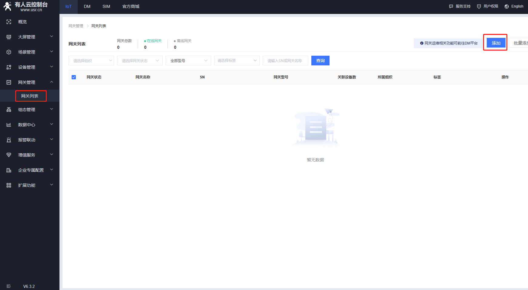 (1)點(diǎn)擊網(wǎng)關(guān)管理,網(wǎng)關(guān)列表,點(diǎn)擊添加,點(diǎn)擊添加。