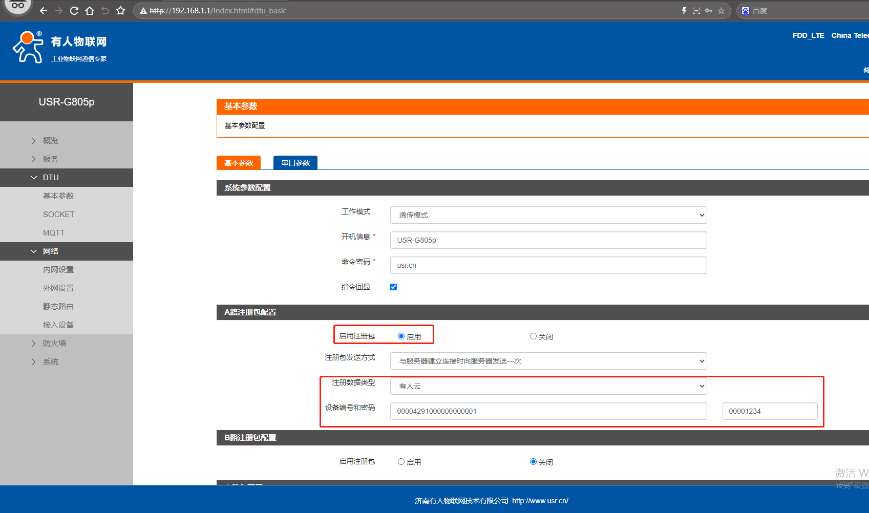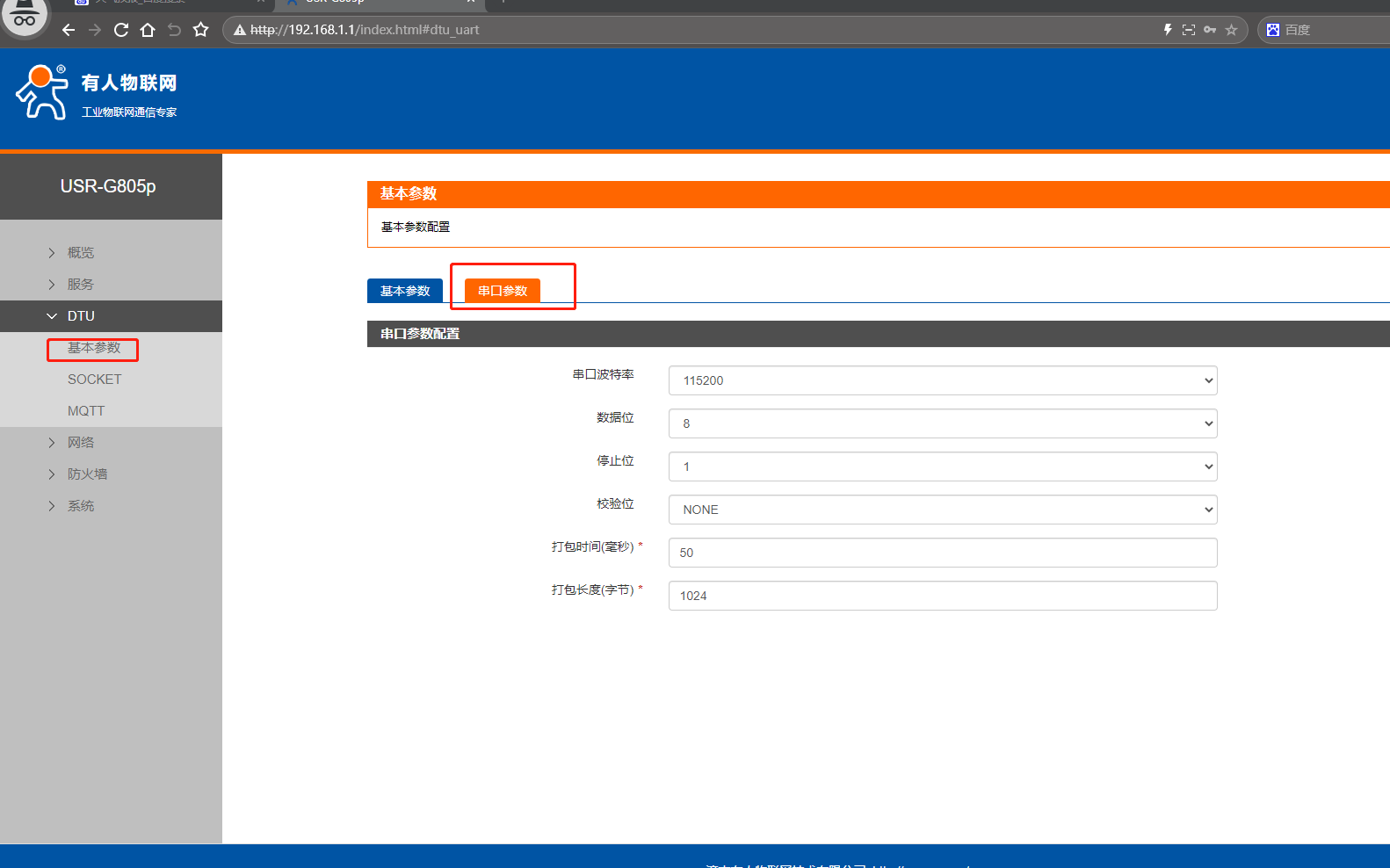 四、USR-G805p網(wǎng)頁(yè)參數(shù)設(shè)置