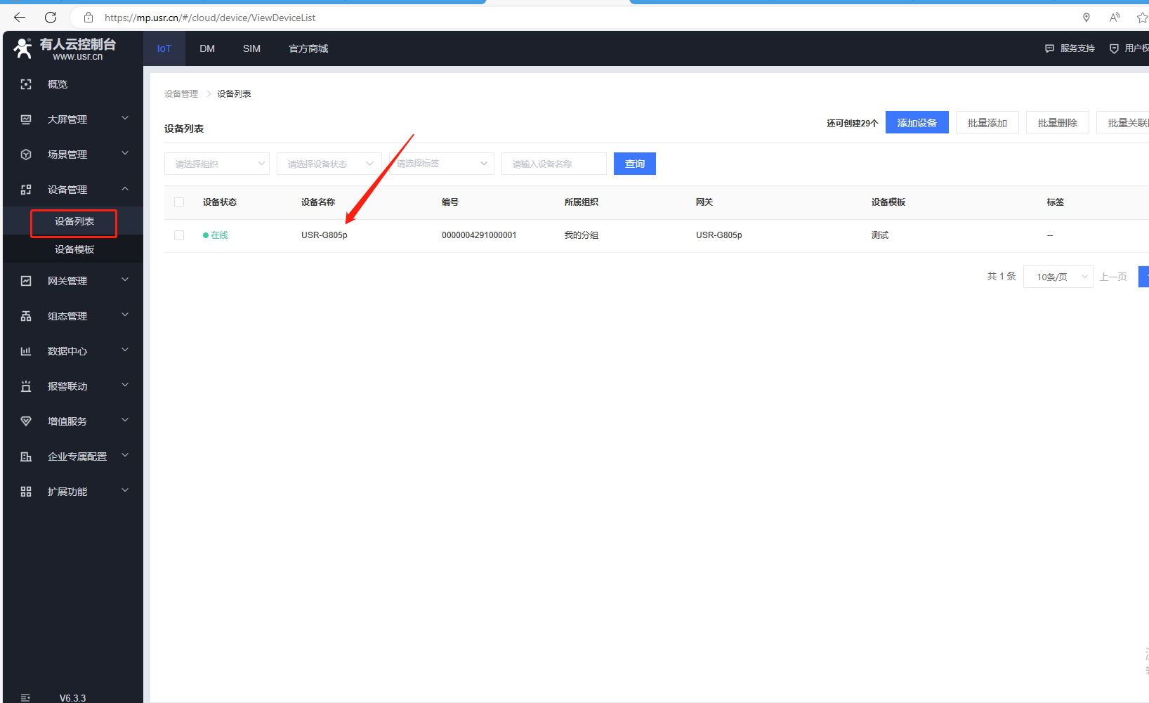 (4)添加設(shè)備,點(diǎn)擊設(shè)備管理,點(diǎn)擊設(shè)備列表,點(diǎn)擊添加設(shè)備。