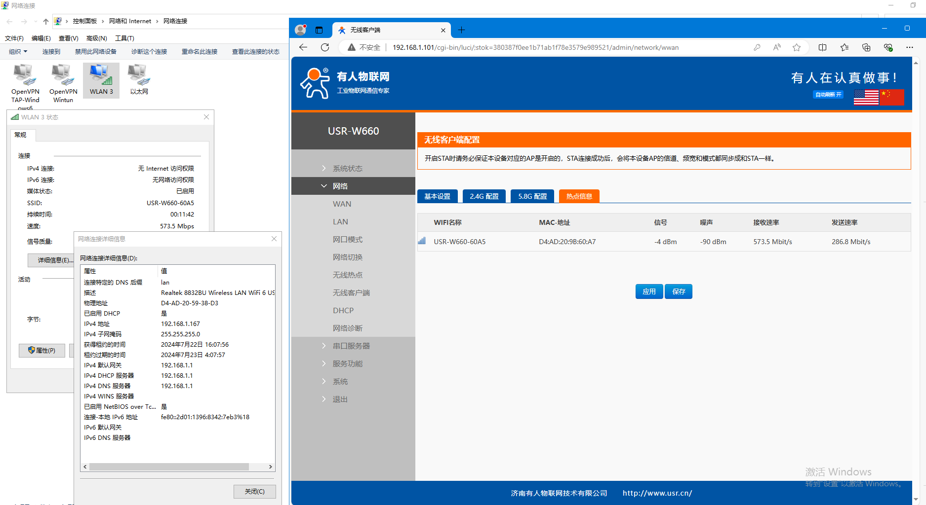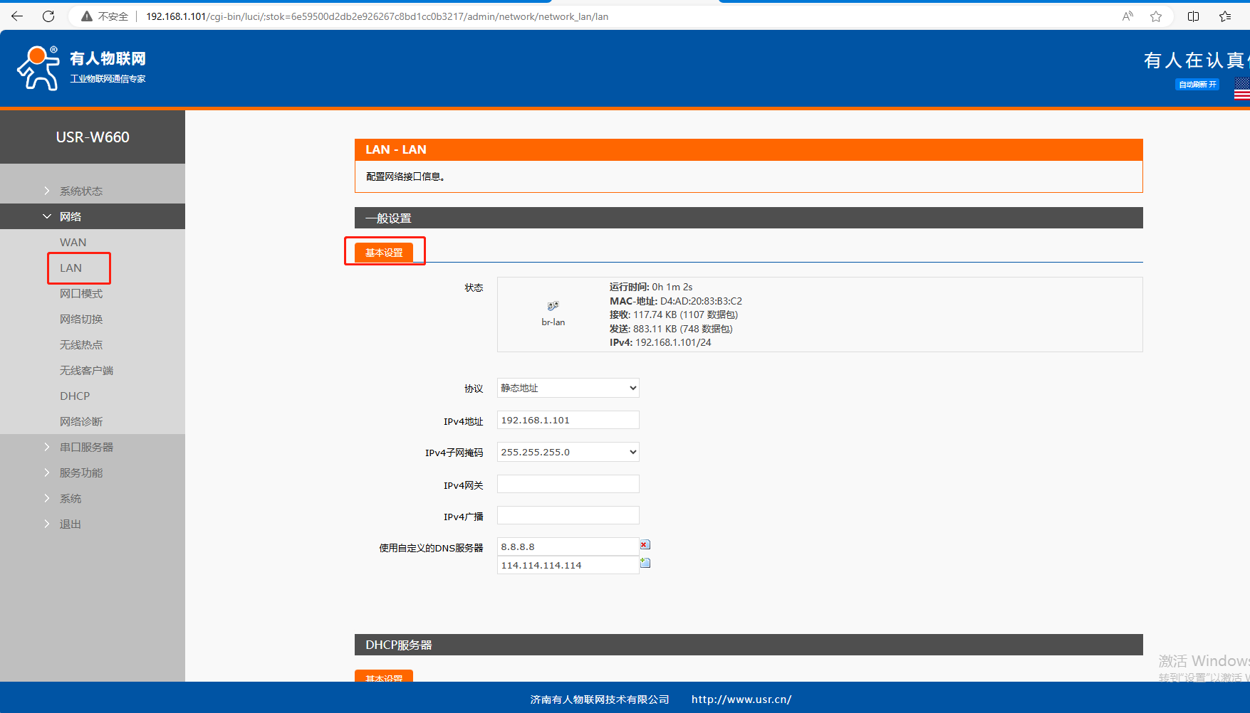 5、橋接模式第一臺電腦可以訪問第2個USR-W660(STA模式)的網(wǎng)頁。