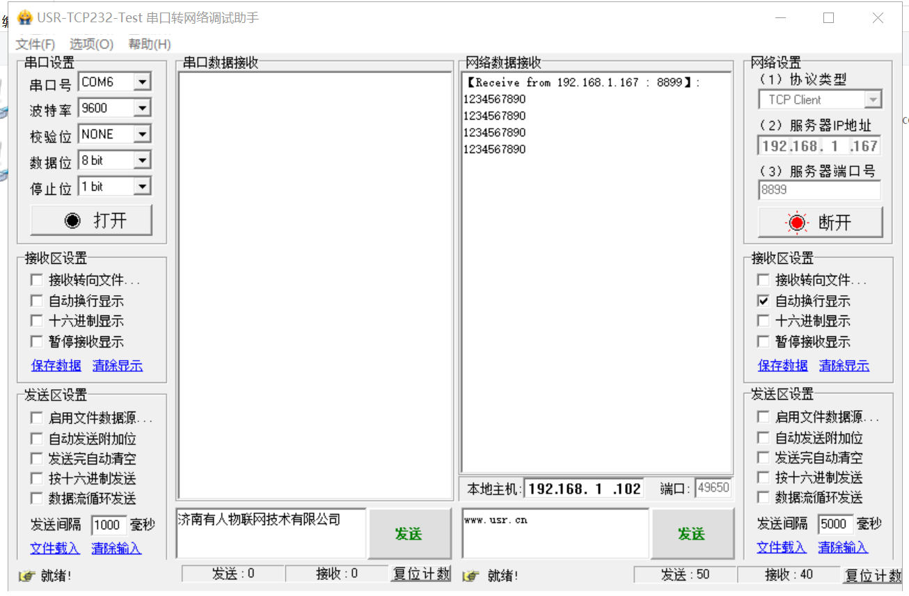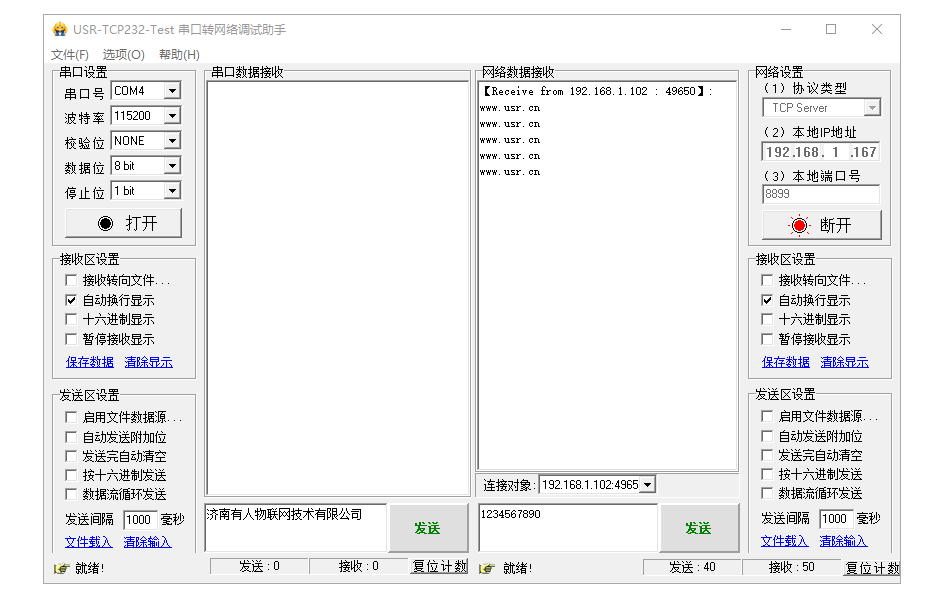 (3)建立TCP連接之后,2個網(wǎng)絡(luò)端,網(wǎng)絡(luò)助手可以相互發(fā)送數(shù)據(jù)。