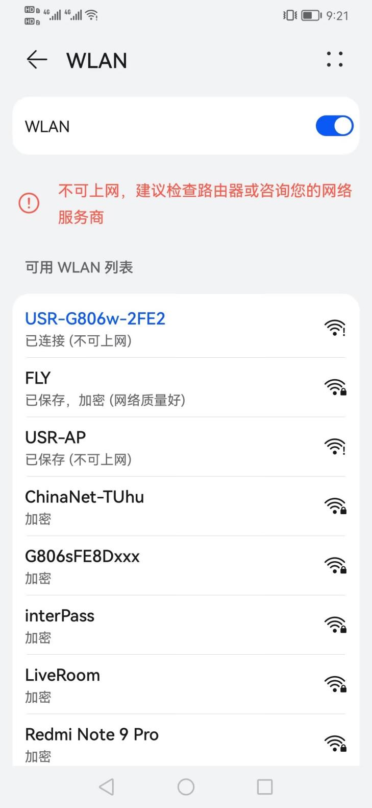 USR-G806w重啟之后,手機(jī)搜索連接USR-G806w的WiFi,無法上網(wǎng)。