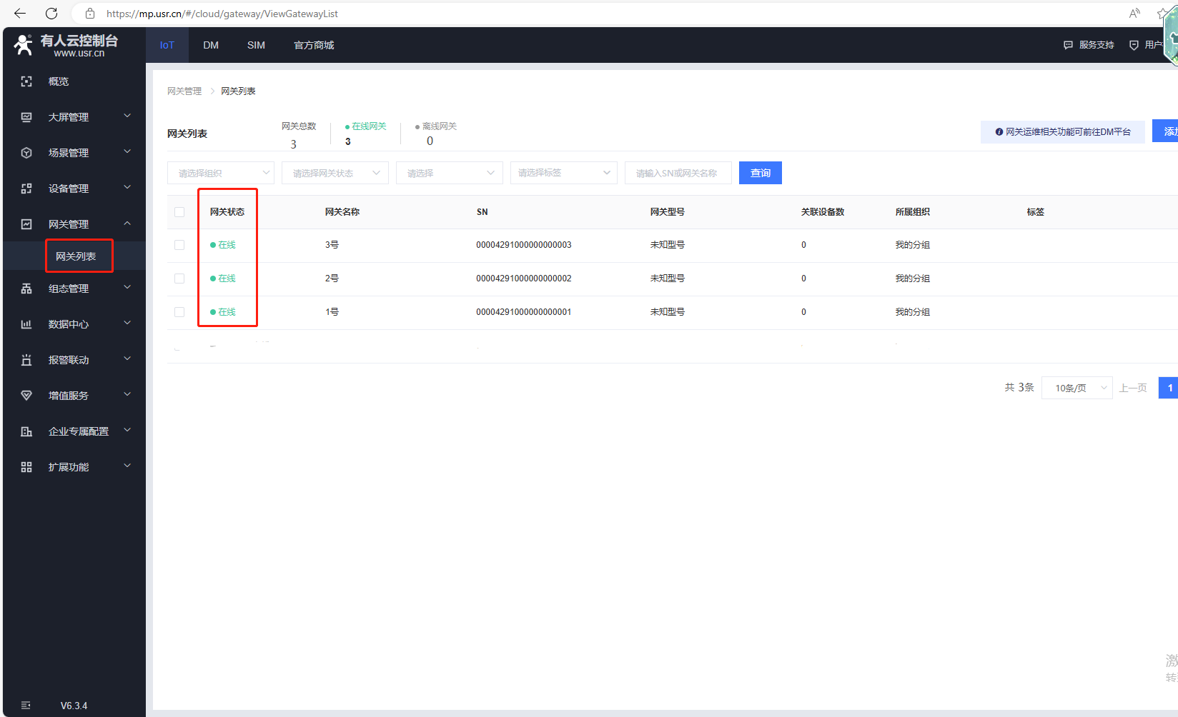 添加完,有人云,網(wǎng)關(guān)列表,USR-VCOM在線。