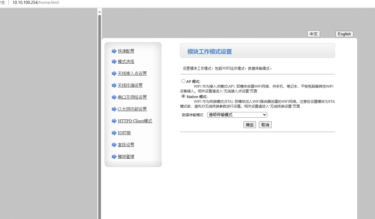 1、電腦連接USR-WIFI232-A2的WiFi,瀏覽器輸入10.10.100.254登陸網(wǎng)頁(yè)