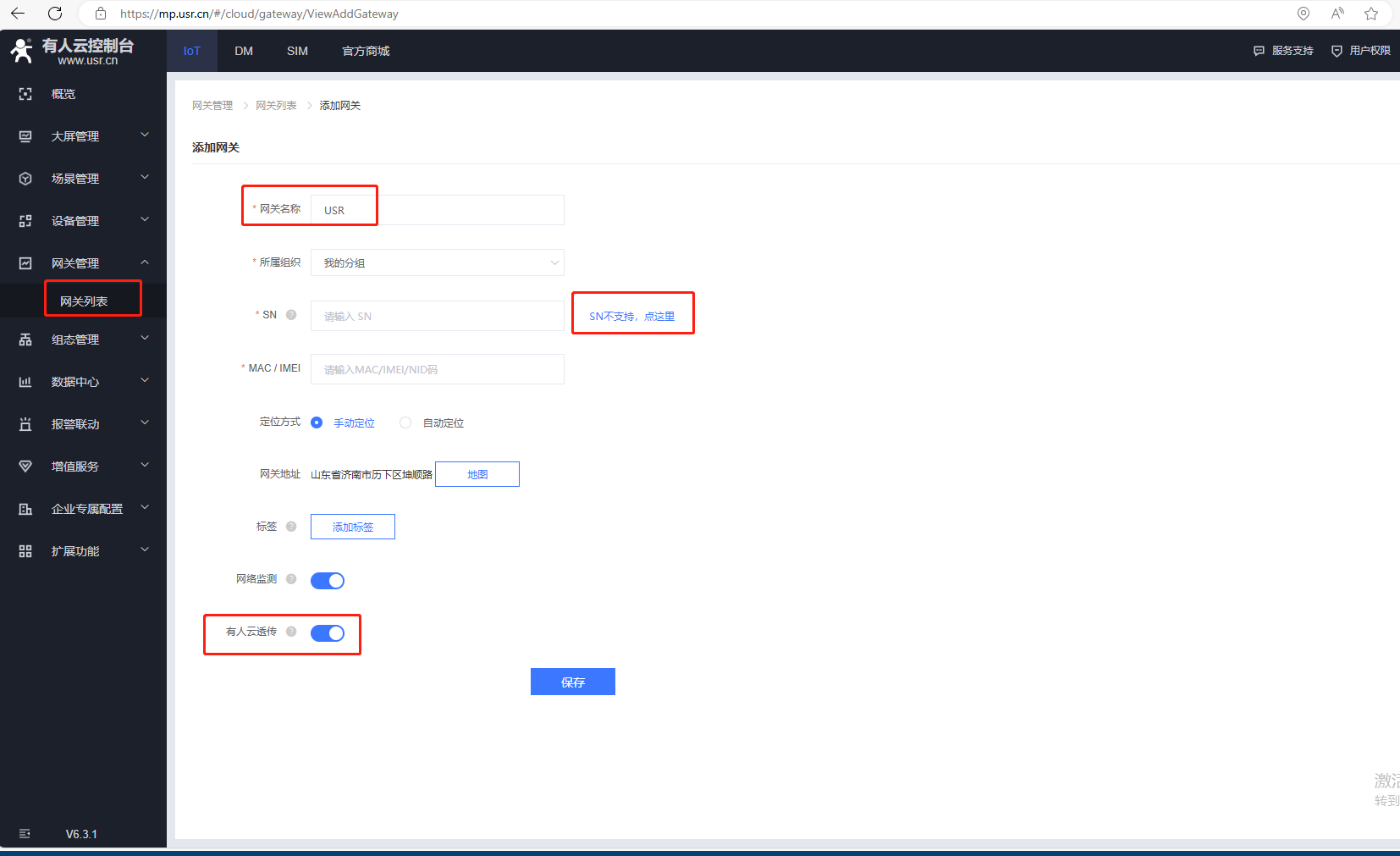 (1)點(diǎn)擊網(wǎng)關(guān)管理,網(wǎng)關(guān)列表,點(diǎn)擊添加,點(diǎn)擊單個(gè)添加。