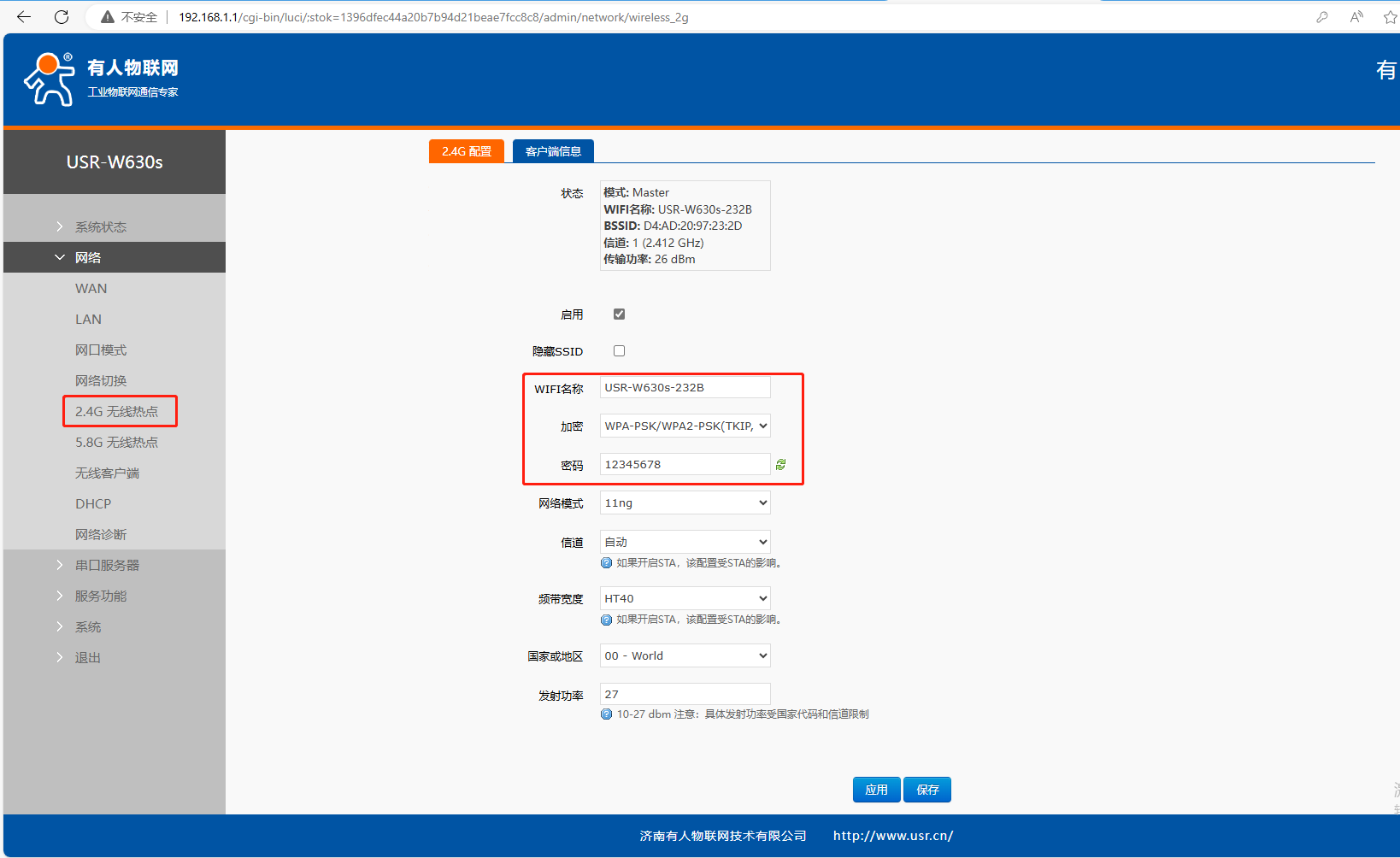 1、USR-W630s AP參數(shù)設(shè)置