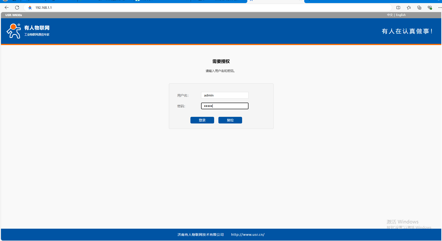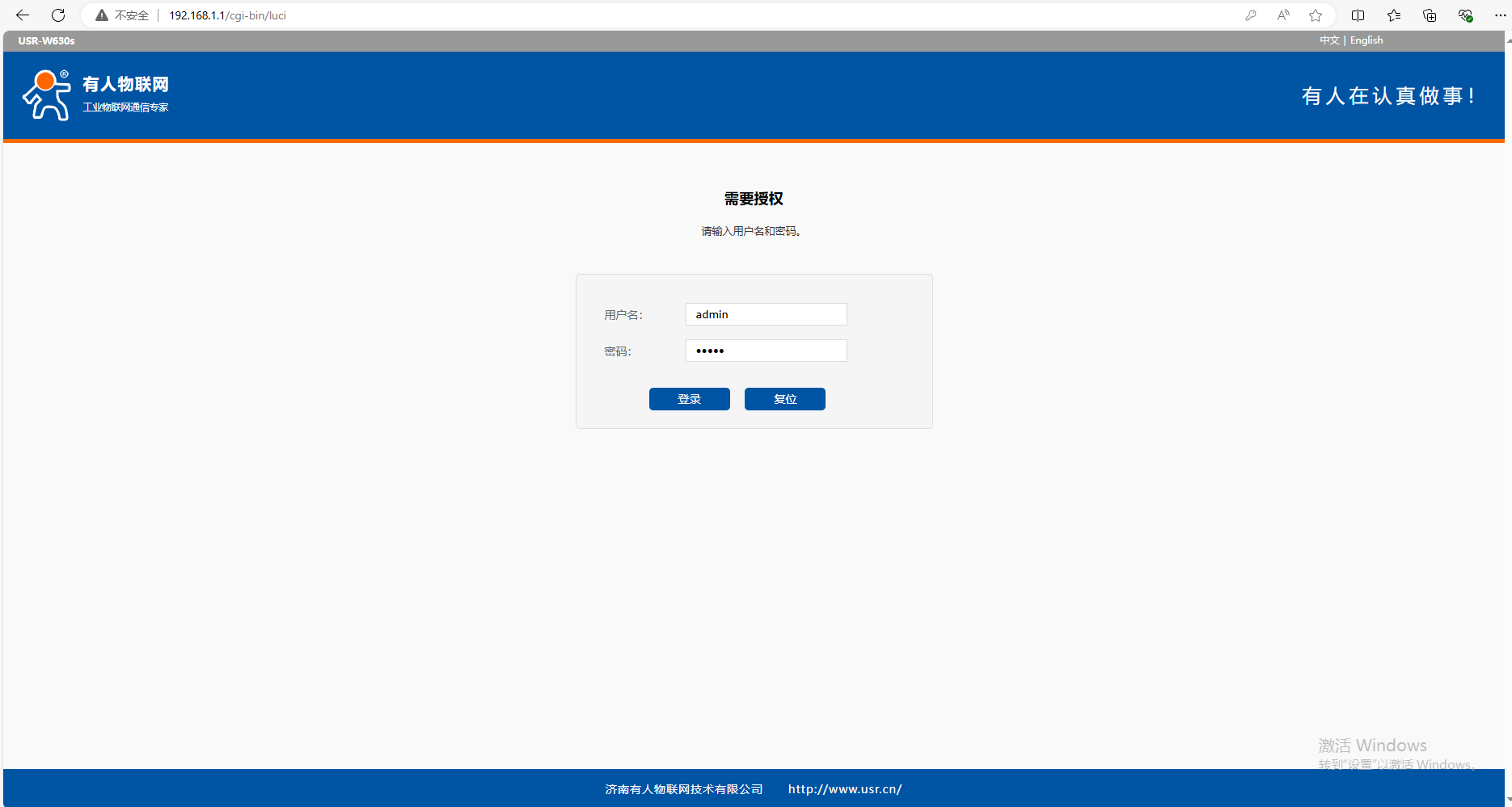 (1)連接USR-W630s 2.4GHZ WiFi,USR-W630s-C320