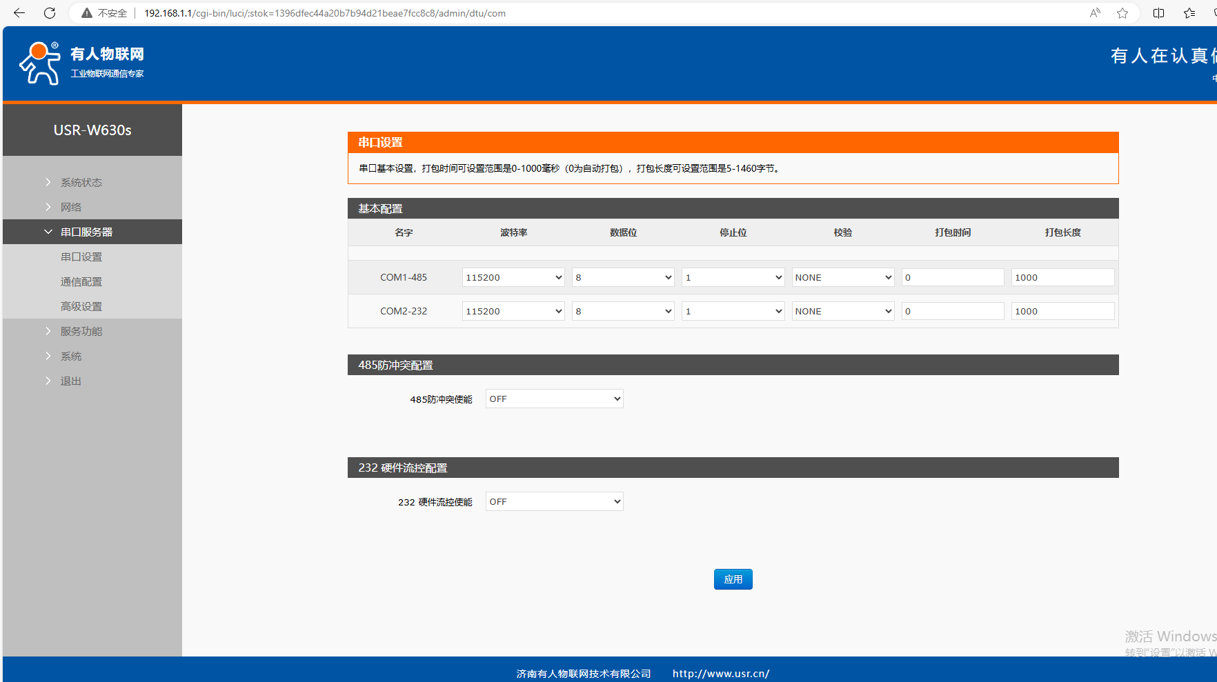 三、USR-W630s參數(shù)設(shè)置