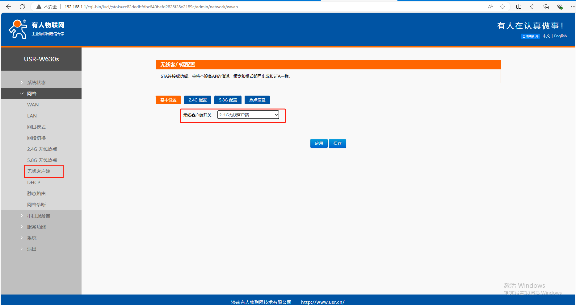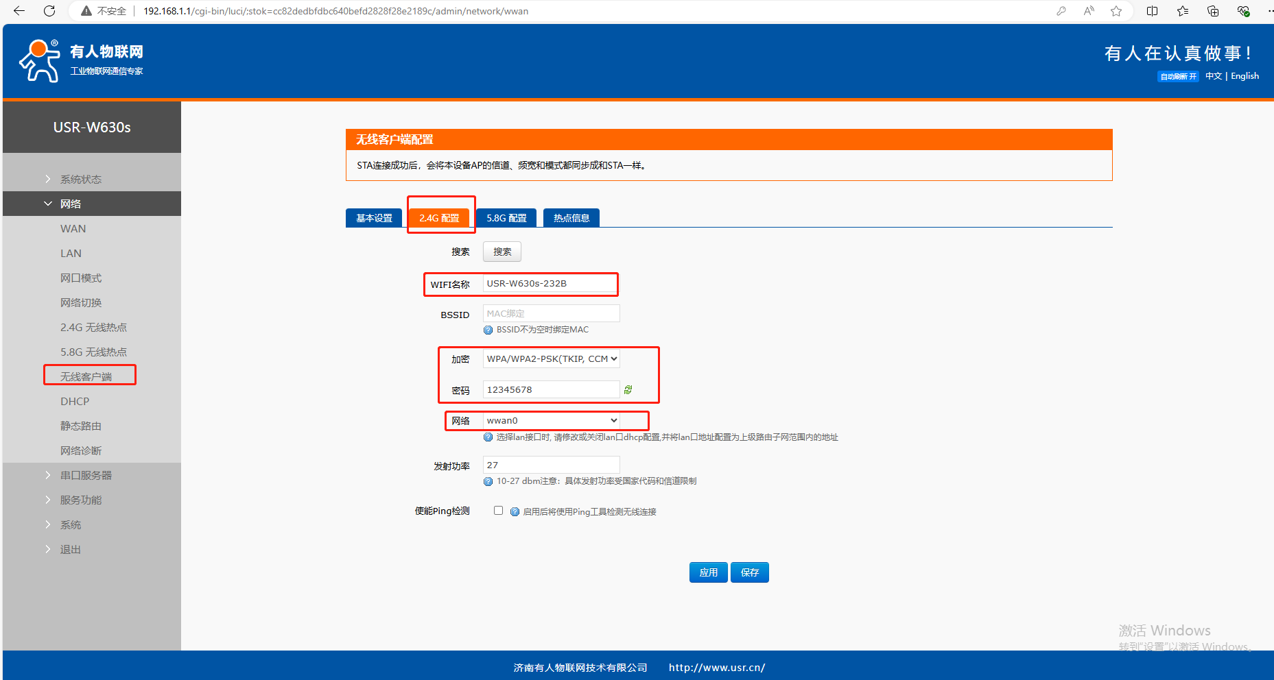 2、USR-W630s STA參數(shù)設(shè)置