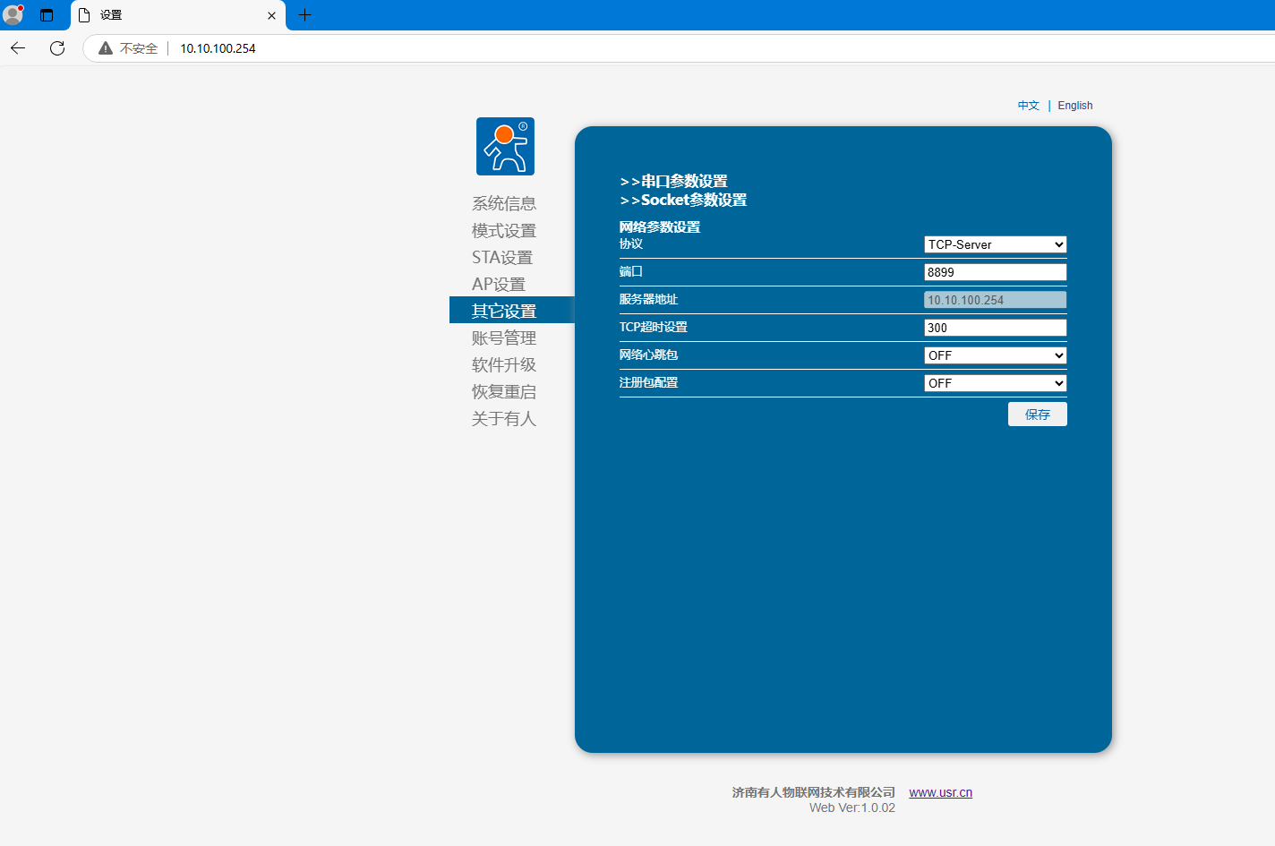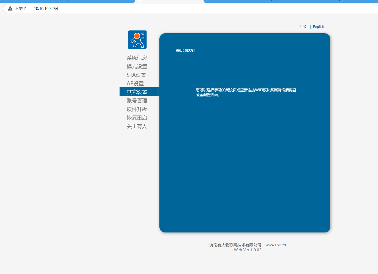 瀏覽器輸入10.10.100.254,用戶名和密碼都是admin,登陸USR-DR164網(wǎng)頁。