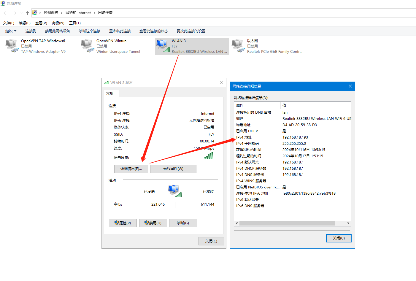 電腦連接同一個路由器,連接之后,電腦打開控制面板,網絡和Internet,網絡連接,查看無線網卡狀態(tài),IPv4地址是192.168.18.193
