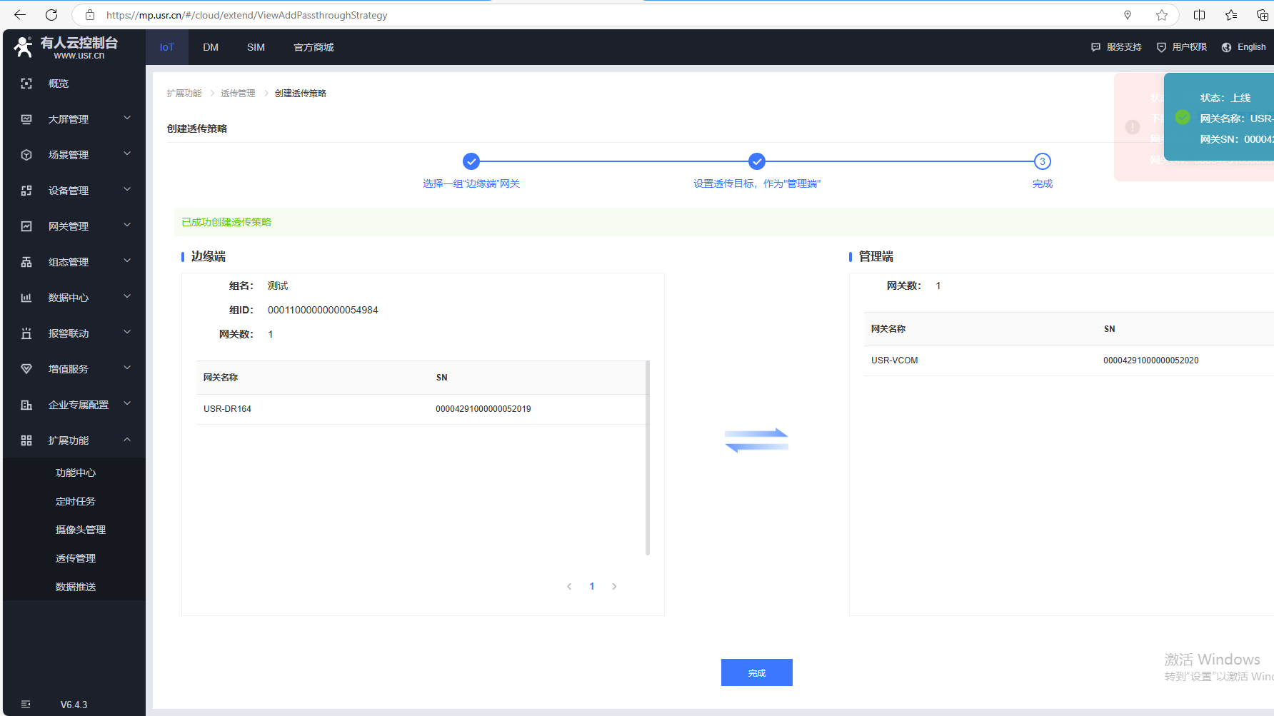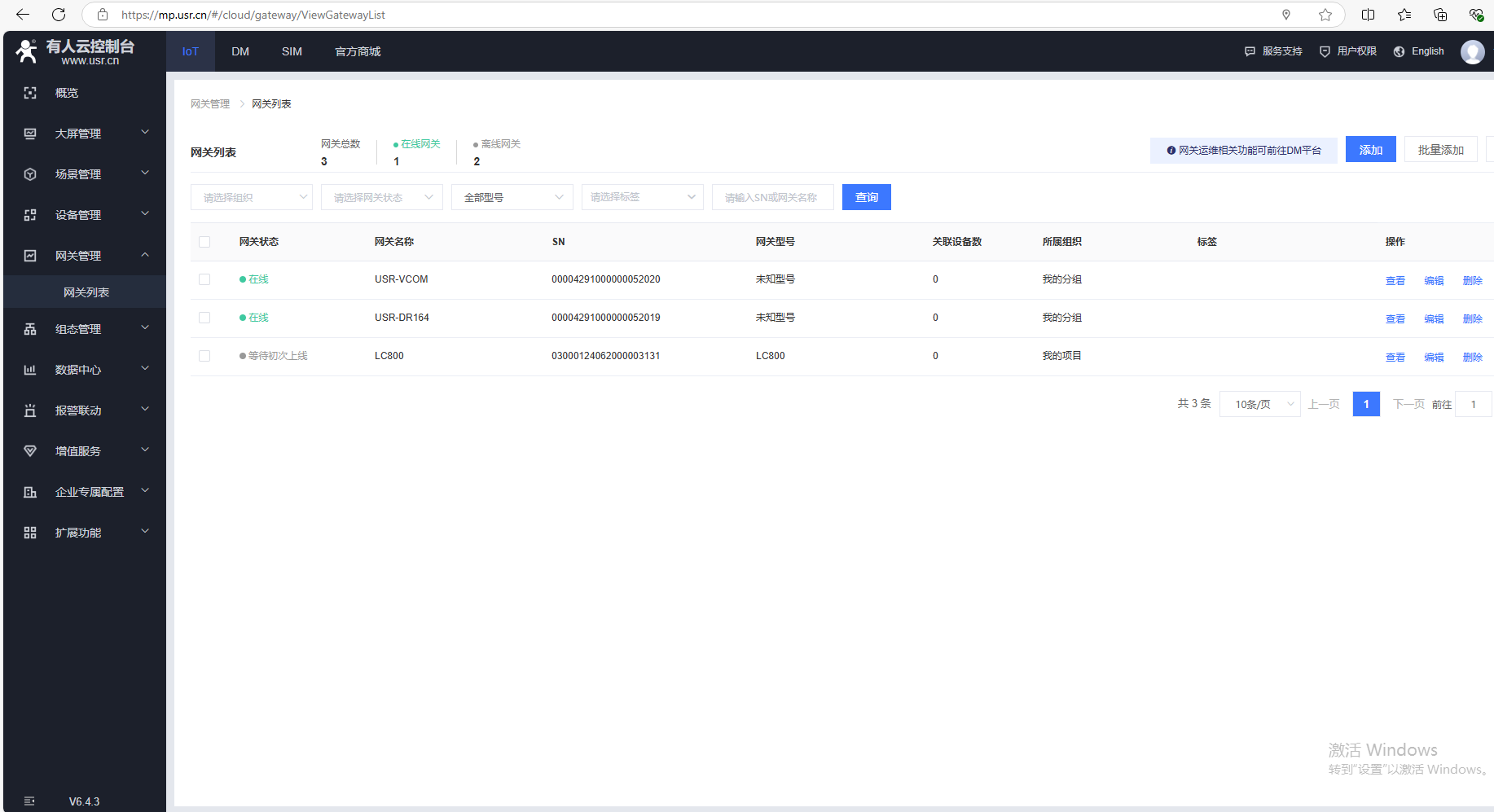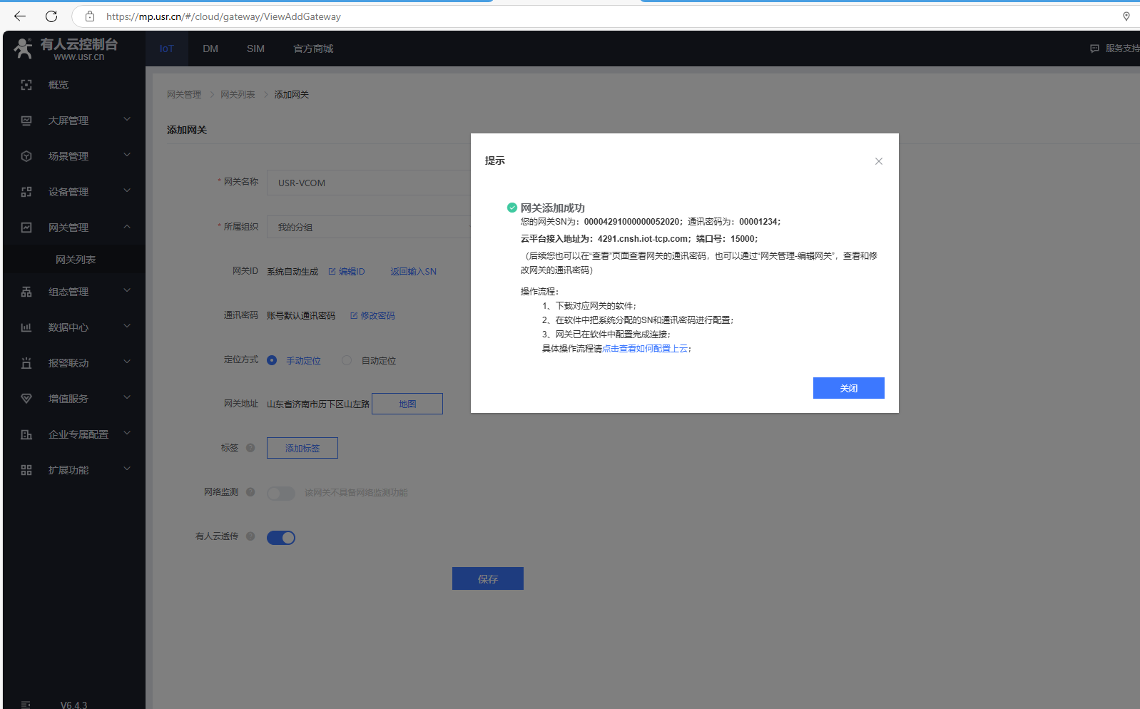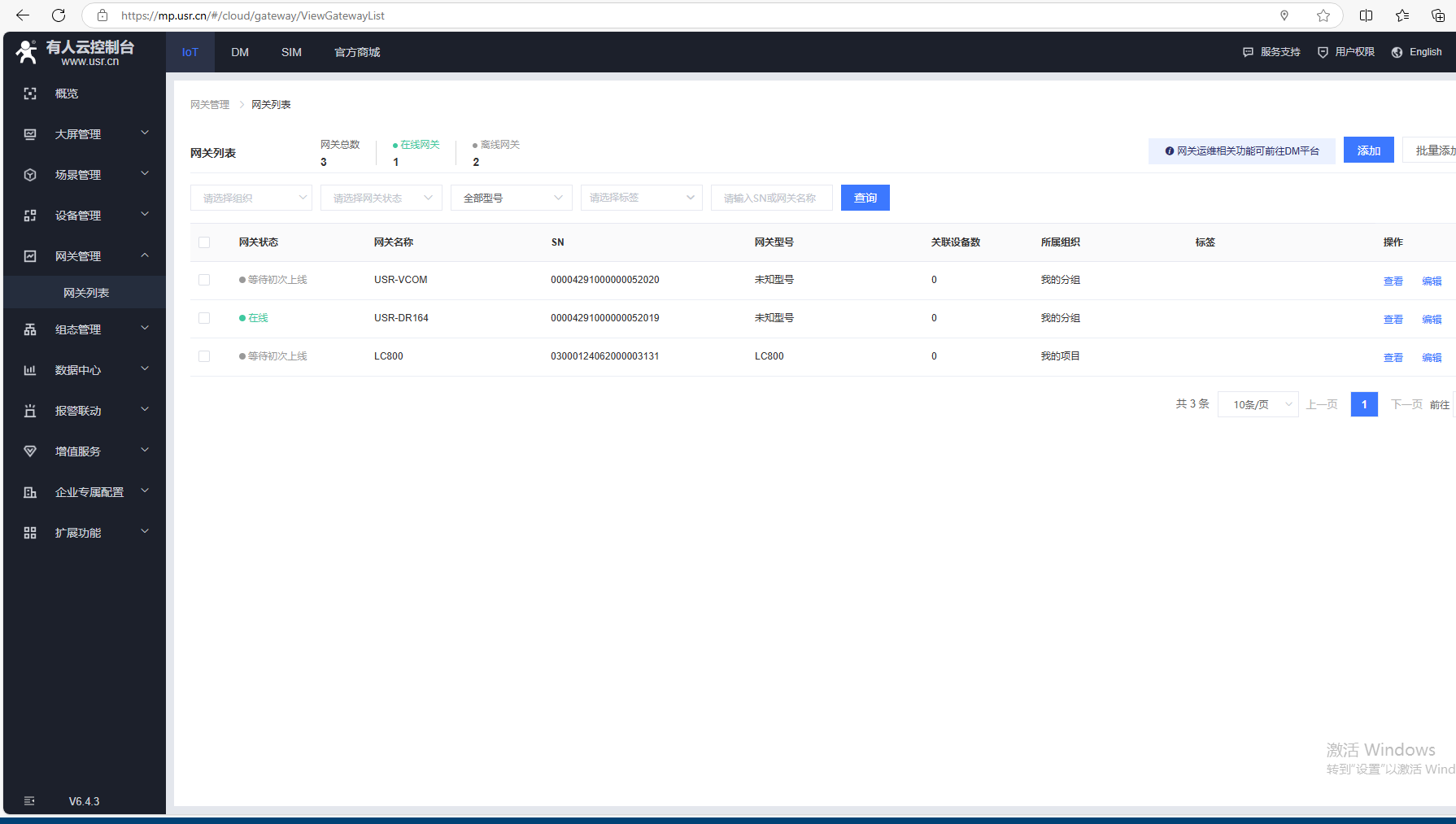 添加完,有人云,網(wǎng)關(guān)列表,USR-VCOM在線。