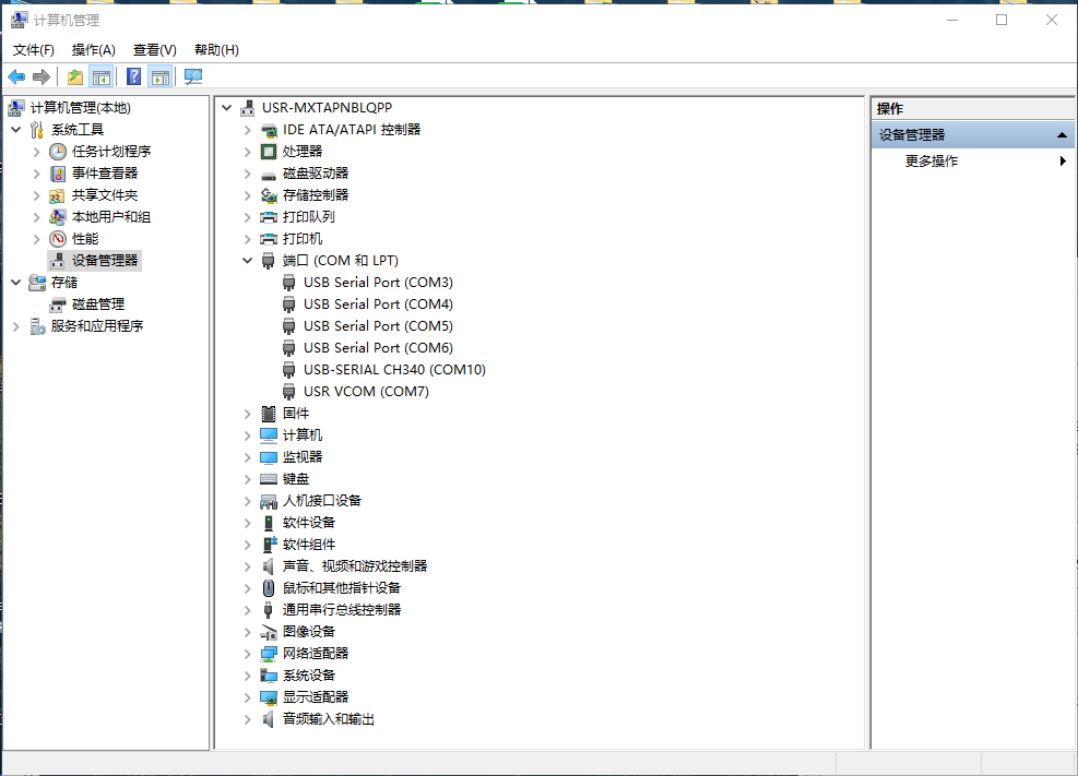 電腦鼠標(biāo)點(diǎn)擊計(jì)算機(jī)管理,右擊,點(diǎn)開設(shè)備管理器,點(diǎn)擊端口,查看新建的虛擬串口COM7。