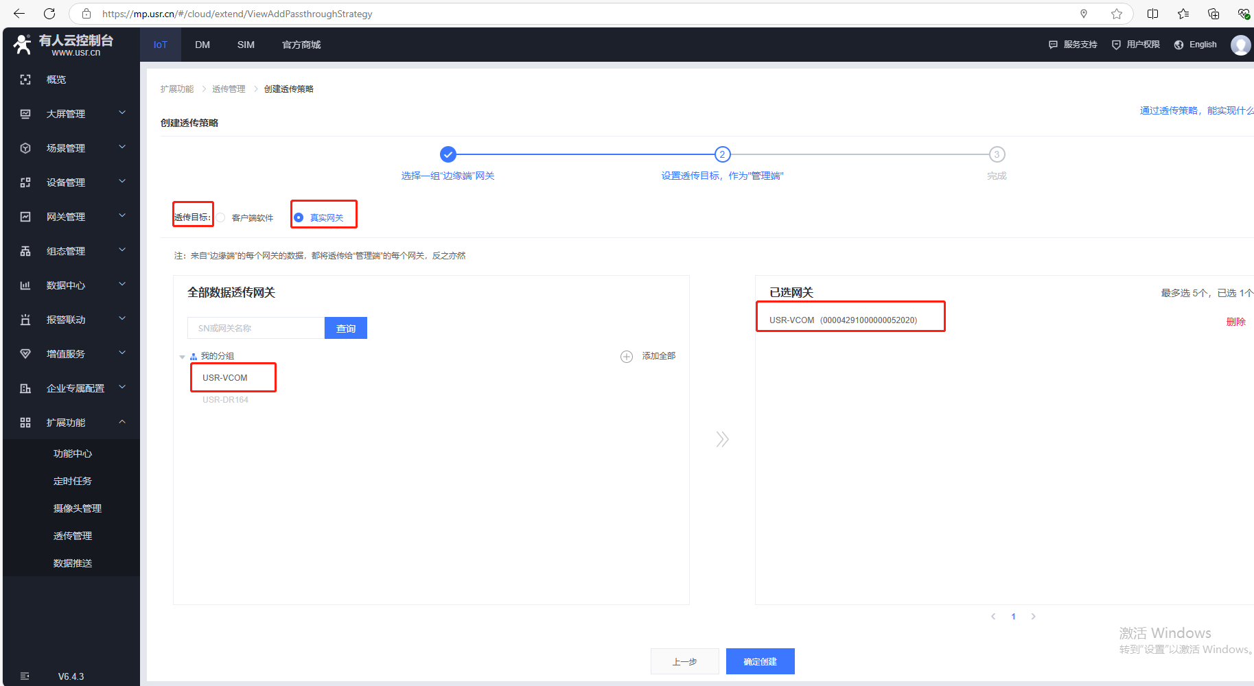 3、選擇管理端,選添加的USR-VCOM做管理端
