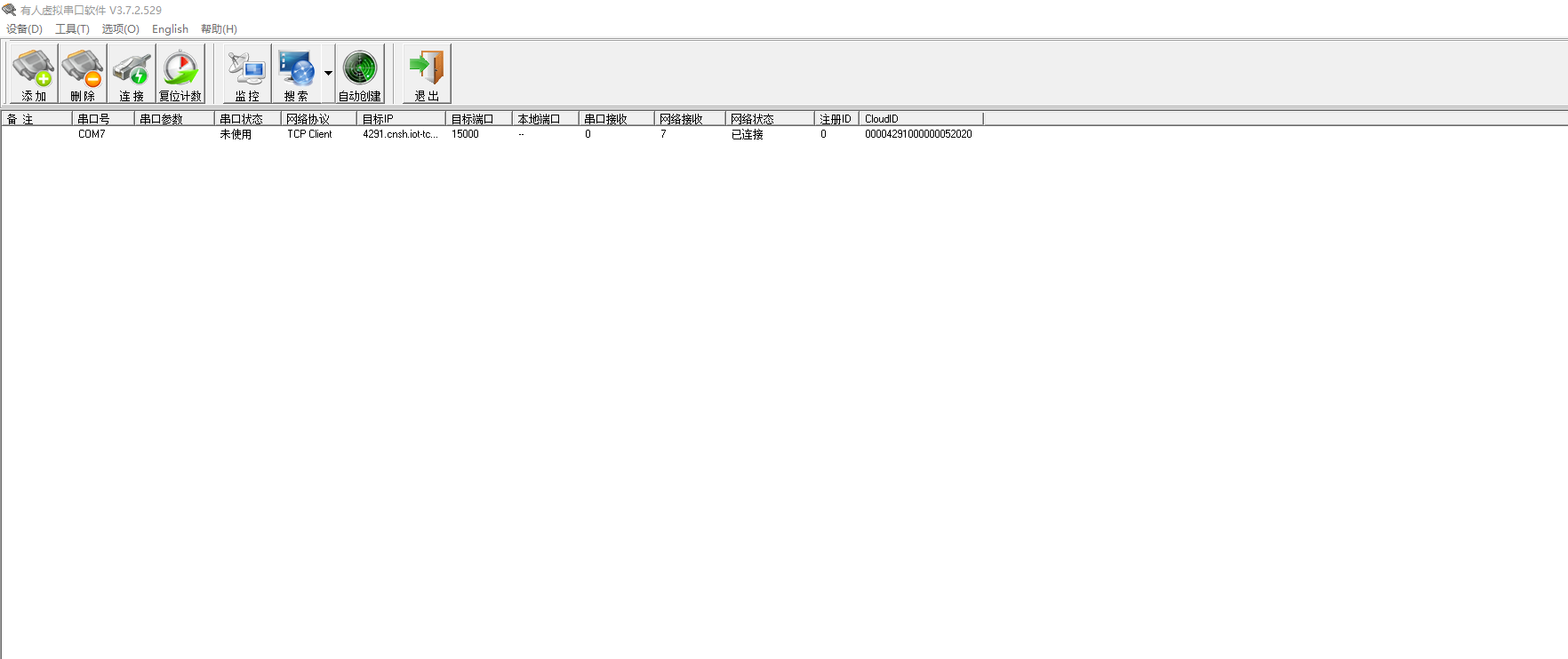 目標(biāo)地址4291.cnsh.iot-tcp.com和目標(biāo)端口號(hào)15000