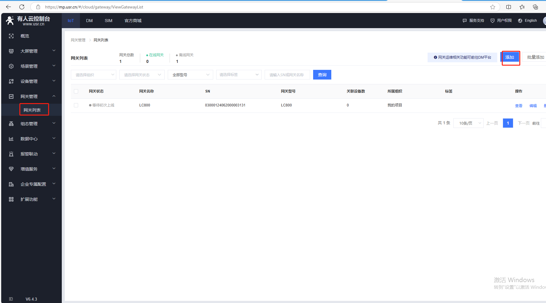 1、點(diǎn)擊網(wǎng)關(guān)管理,網(wǎng)關(guān)列表,點(diǎn)擊添加,點(diǎn)擊單個(gè)添加。
