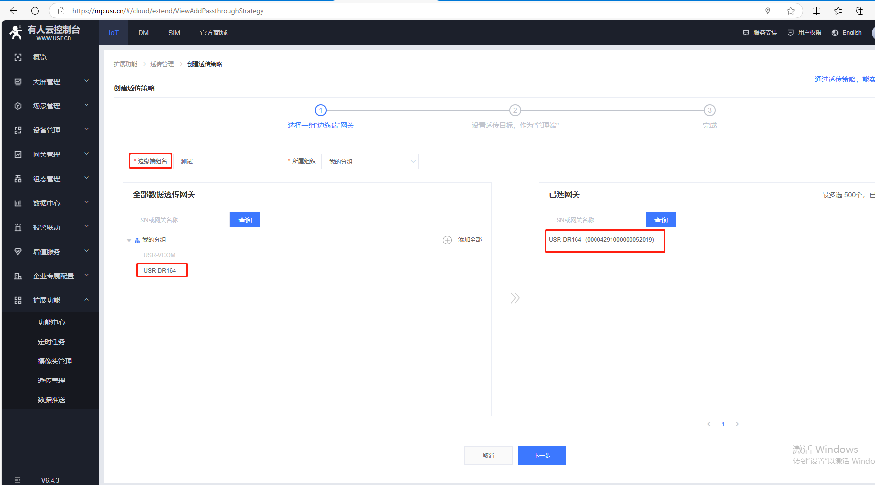 2、選擇邊緣端網(wǎng)關(guān),添加的USR-DR164產(chǎn)品設(shè)備