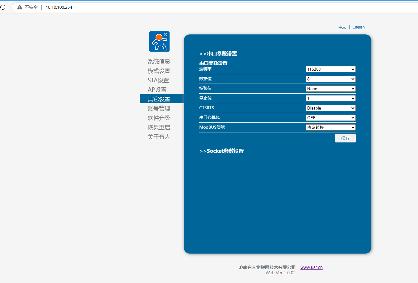 瀏覽器輸入10.10.100.254,用戶名和密碼都是admin,登陸USR-DR164網(wǎng)頁。