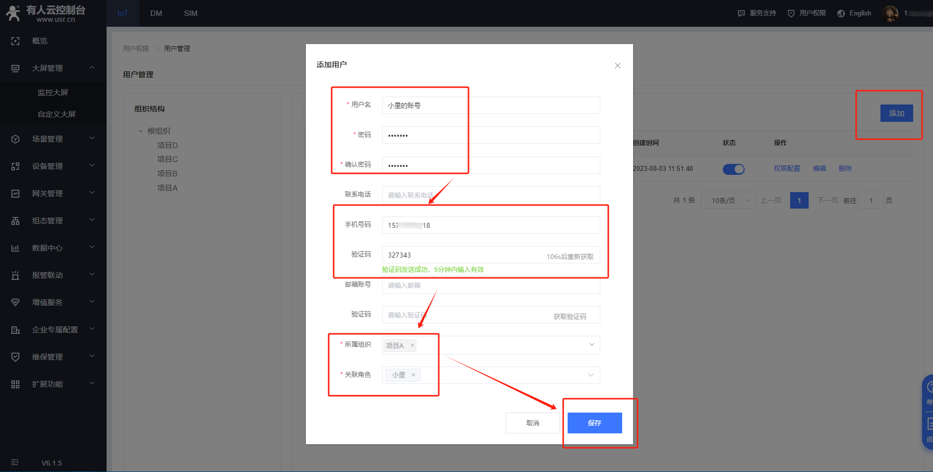 3.用添加子用戶的手機(jī)號(hào)或者用戶名+密碼,可以登錄子賬號(hào),后續(xù)添加組織A下的網(wǎng)關(guān),可以在子賬號(hào)里看到
