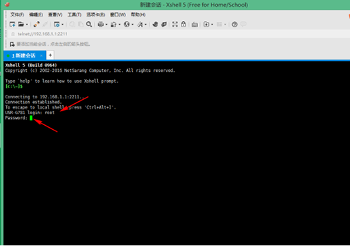 6、協(xié)議選為ssh 主機(jī)填寫192.168.1.1 端口號填寫2211,點(diǎn)擊“確定”,協(xié)議選為TELNET
