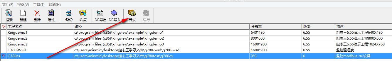 4.2 將新建設(shè)置為當(dāng)前工程,點擊“開發(fā)”