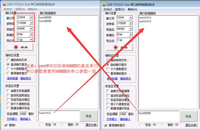 3、W600配合虛擬串口進行數(shù)據(jù)傳輸(用虛擬串口測試,需要斷開上面小黃人的網(wǎng)絡連接)