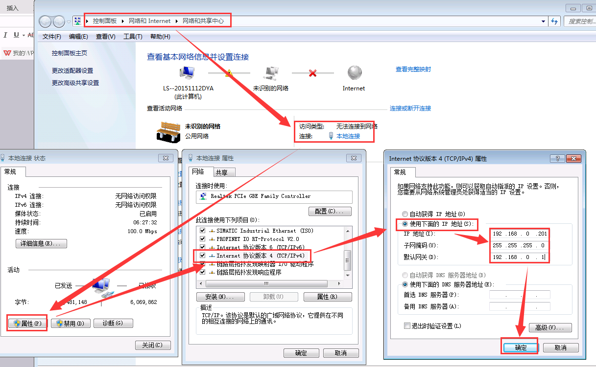 2. 設(shè)置電腦端的IP地址為192.168.0.201