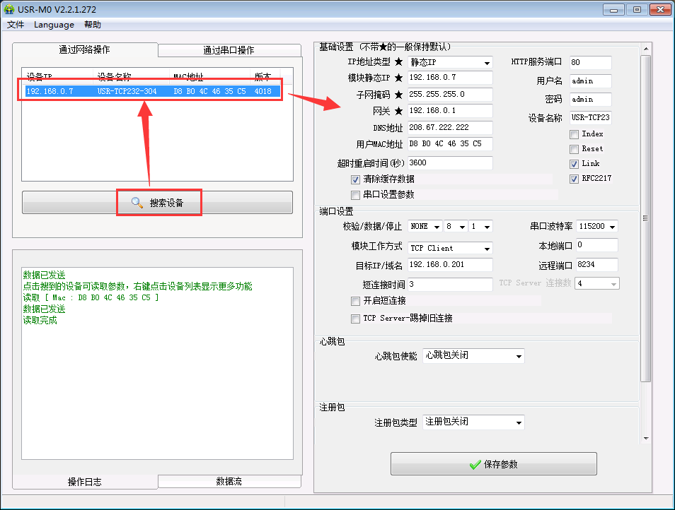 3. 打開設(shè)置軟件:搜索設(shè)備--->點擊搜索出來的設(shè)備--->設(shè)備目前的參數(shù)