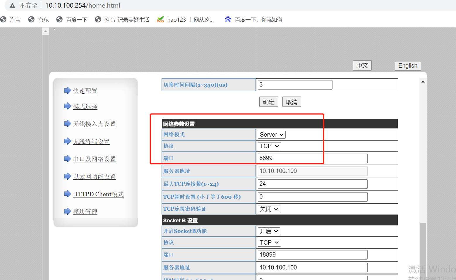 說(shuō)明:因?yàn)閃610網(wǎng)絡(luò)參數(shù)是TCP server,所以小黃人的網(wǎng)絡(luò)端設(shè)置成TCP client,服務(wù)器的IP地址是W610的lanIP地址,端口號(hào)是W610的本地端口號(hào)