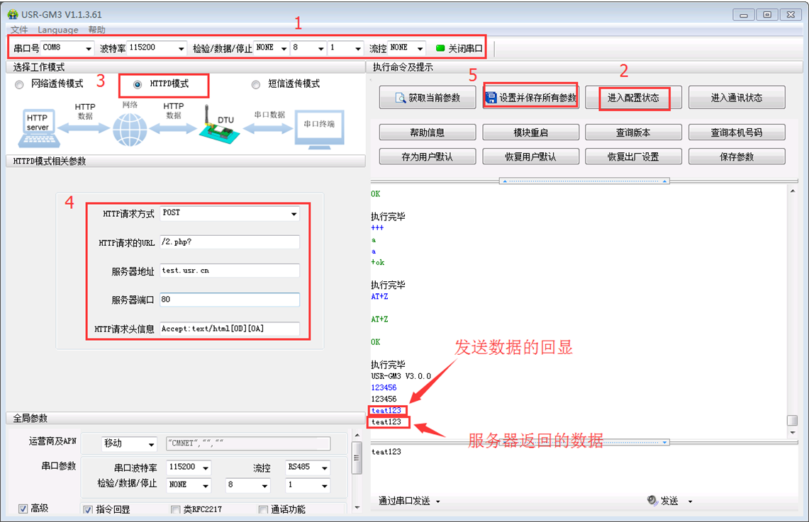 Test.usr.cn這個(gè)服務(wù)器的功能就是,串口發(fā)送什么數(shù)據(jù),服務(wù)器就將收到的數(shù)據(jù)返回到串口端。