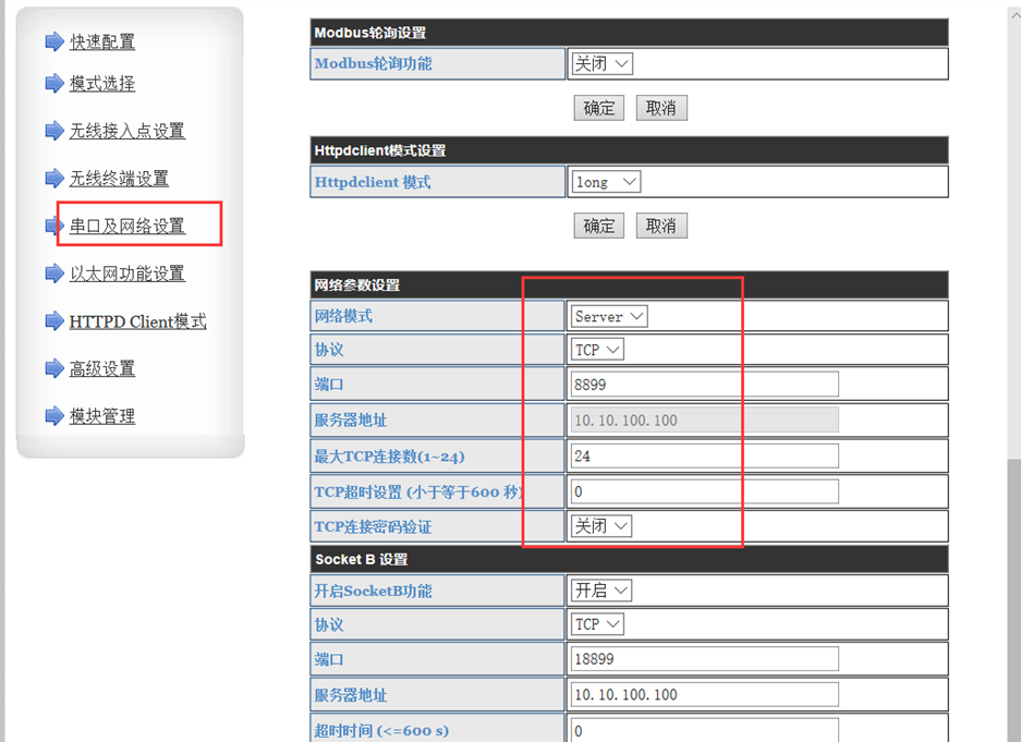 (1)第一種結(jié)果測(cè)試方法:打開有人串口轉(zhuǎn)網(wǎng)絡(luò)調(diào)試助手,參數(shù)配置如圖