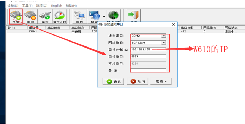 4.設(shè)置W610為TCP Server 協(xié)議,端口號(hào)默認(rèn)8899(可根據(jù)自己需求設(shè)置) 點(diǎn)擊確定