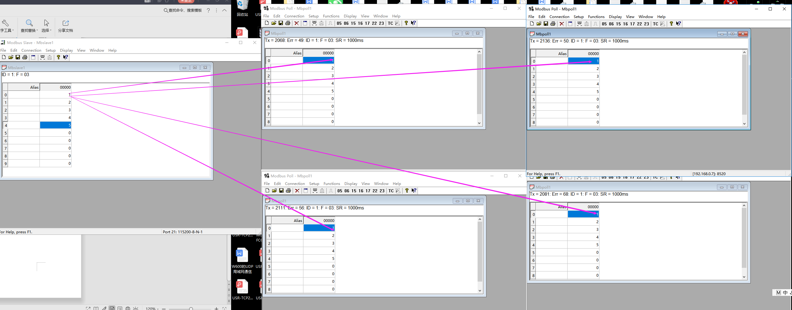 5. 在Modbus Slave發(fā)送數(shù)據(jù)給Modbus Poll,Modbus Poll可以正常接收,即為成功,如圖所示: