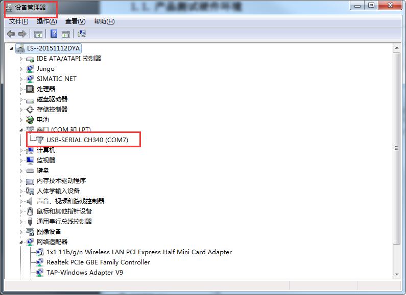 其中串口號(hào)可以在電腦的“設(shè)備管理器”中查看,見下圖;