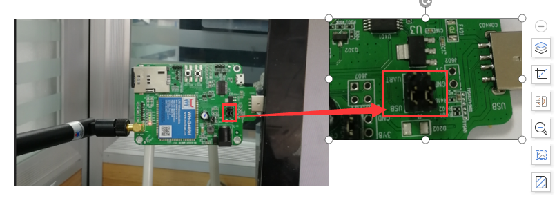 2. 安裝驅(qū)動(dòng)完成后,將405tf測(cè)試底板上的跳線帽接到USB端,見下圖