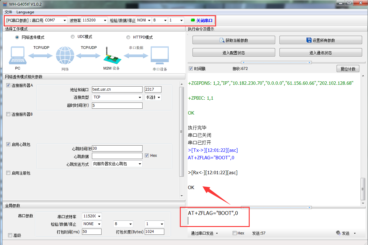 4.通過AT Interface COM口發(fā)送AT+ZFLAG=”BOOT”,0(注意:0后面有一個(gè)回車換行,并且都是英文狀態(tài)下的字符),返回一個(gè)OK表示執(zhí)行成功。