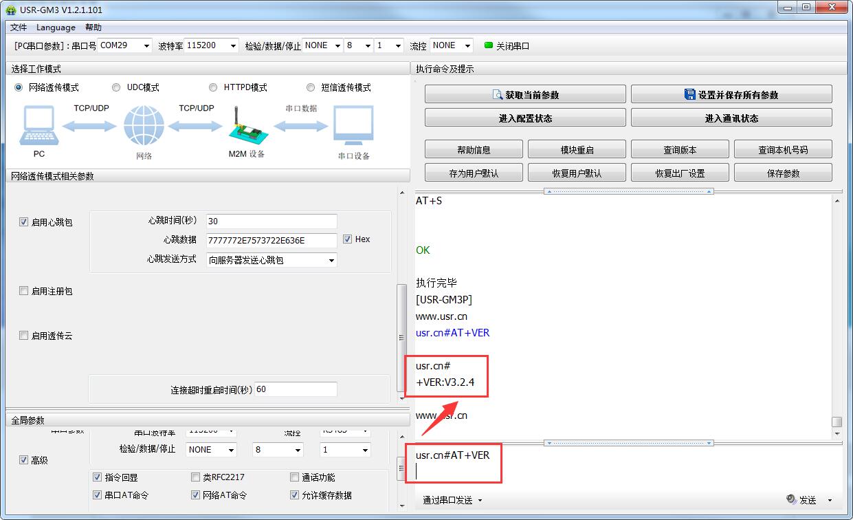 等待模塊重啟后,我們?cè)侔l(fā)送剛才的查詢(xún)版本的指令,可以看到GM3P有回復(fù)固件版本號(hào)