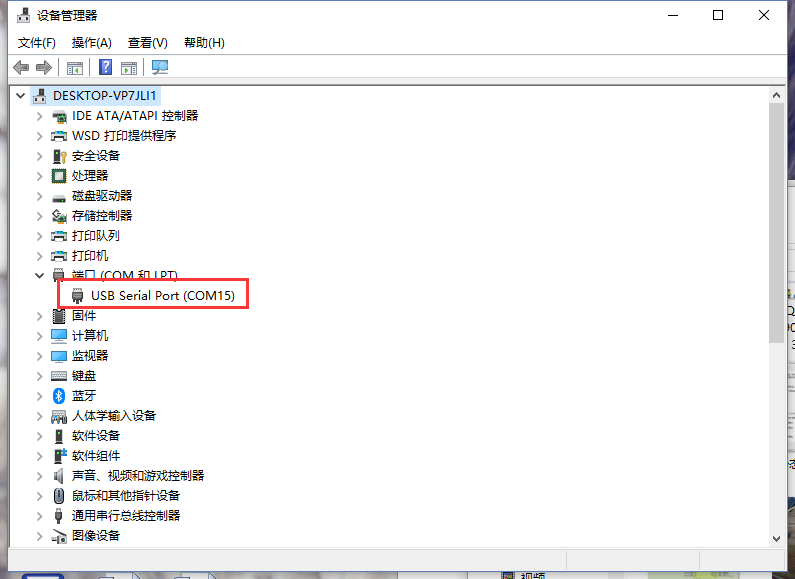 其中串口號(hào)可以在電腦的“設(shè)備管理器”中查看,見下圖;