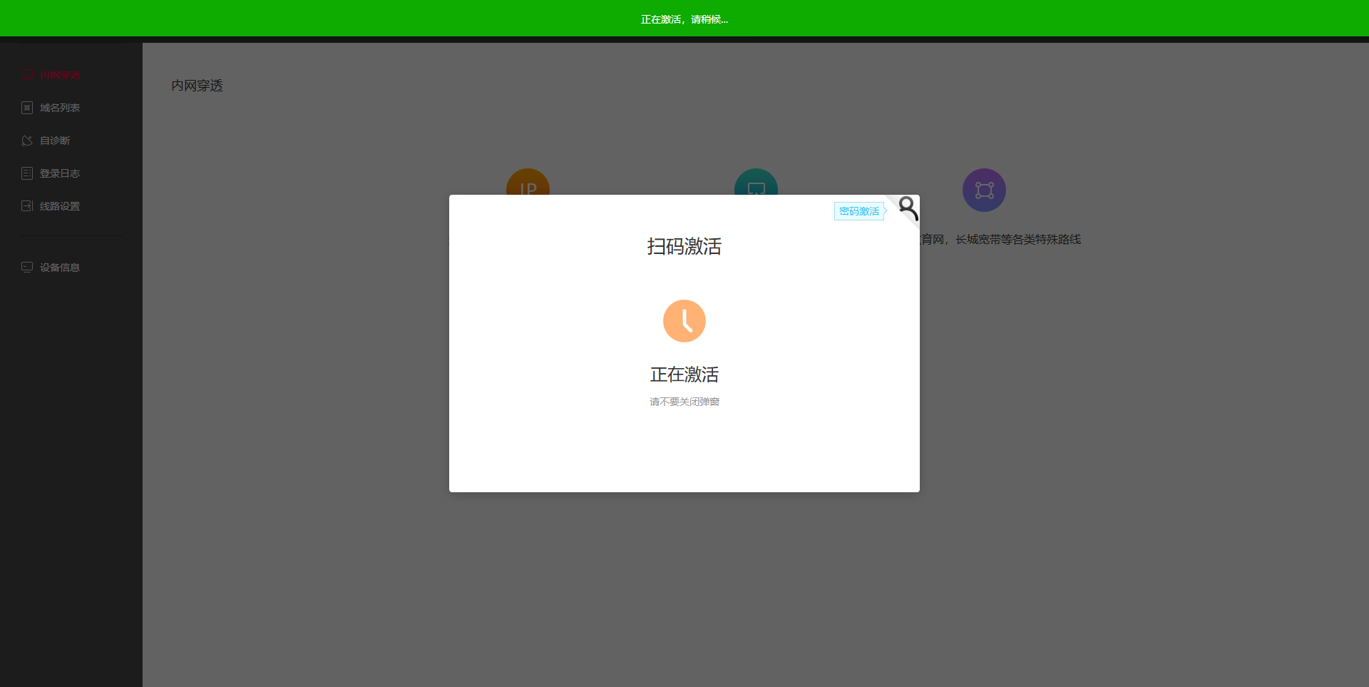 掃描成功后,顯示正在激活,提示手機(jī)端確認(rèn)。
