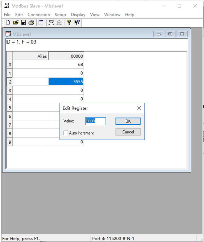 (9)從中軟件修改數(shù)據(jù),雙擊數(shù)據(jù),在value框中將要修改的數(shù)據(jù)寫入,點擊ok即可進行修改。(slave和poll軟件中均可進行修改)